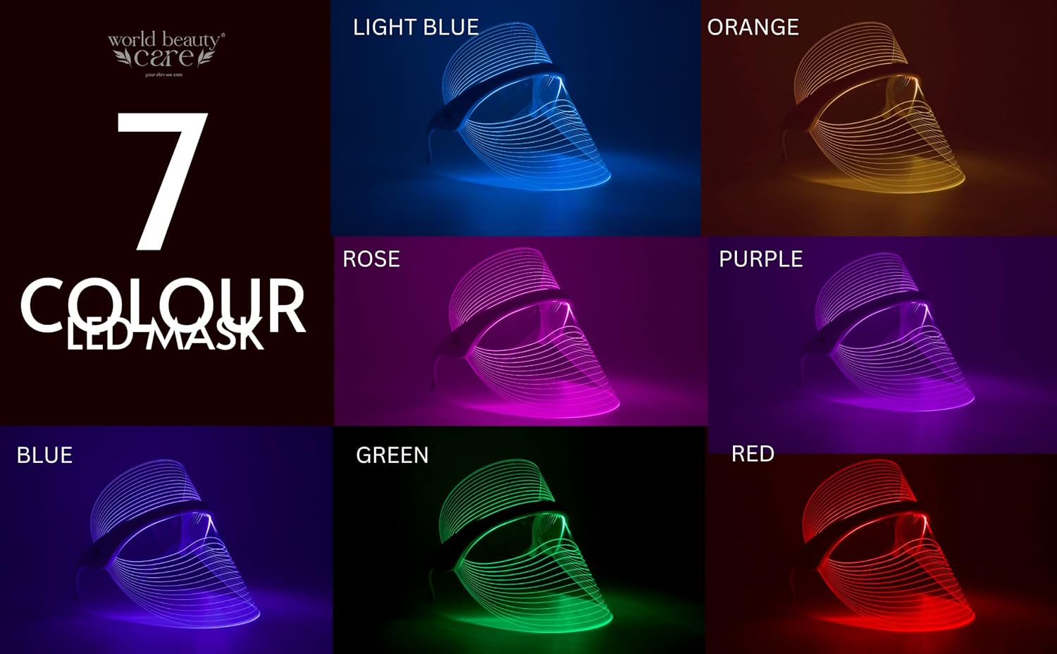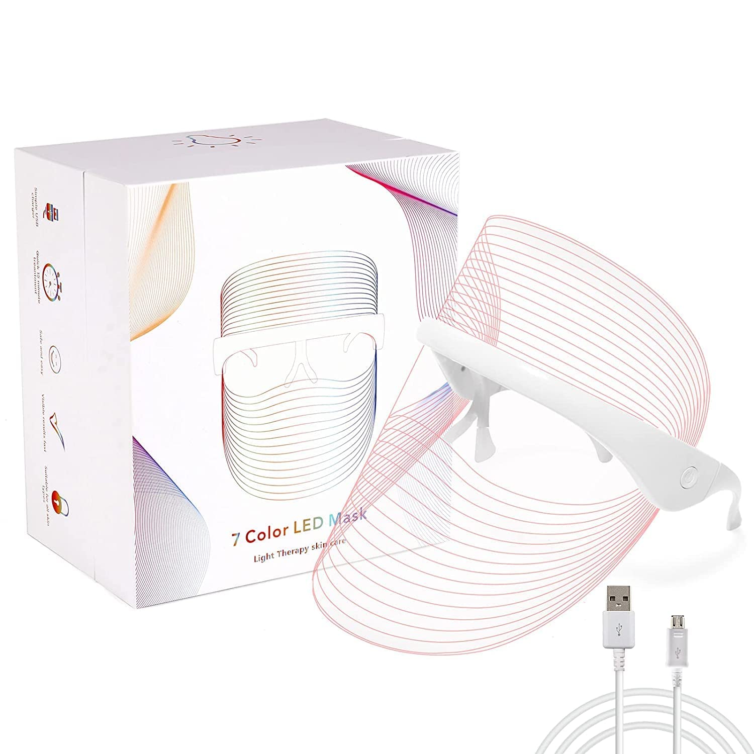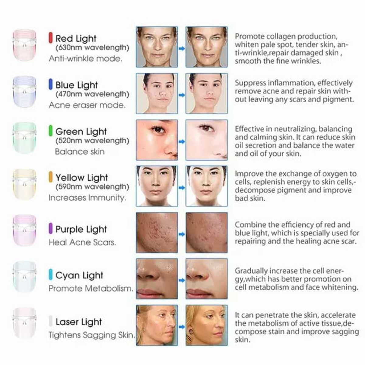 Multifunctional and Easy to Use-LED face mask light therapy with 7 colors L E D light of red, blue,orange,green,purple,light purple and cyan, it improves the skin. The transparent, lightweight design satisfies you to do more things you want to do while skin care