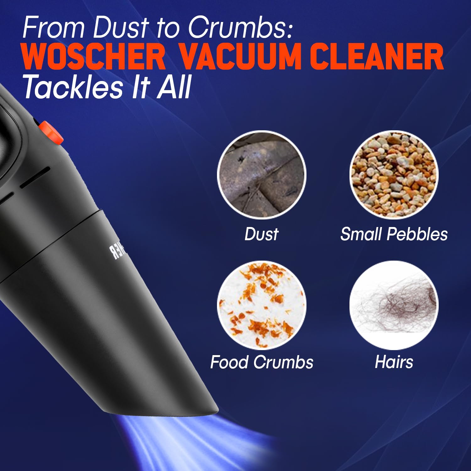 Durable Construction: Made from high-quality materials, the WOSCHER car vacuum cleaner is built to last and withstand frequent use.