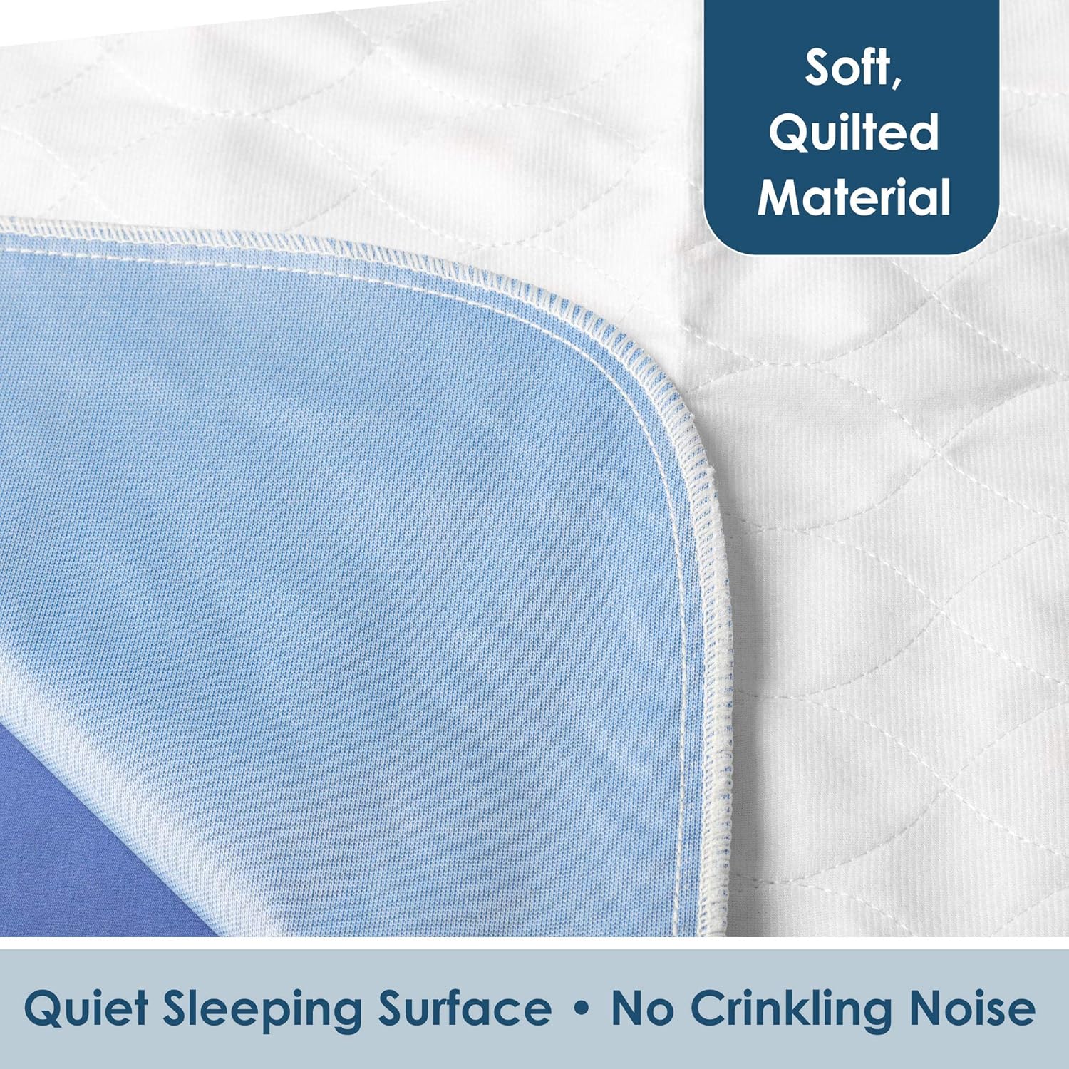 NO CRINKLY SOUND – Waterproof vinyl layer is sandwiched between the soft absorbent padded layers.