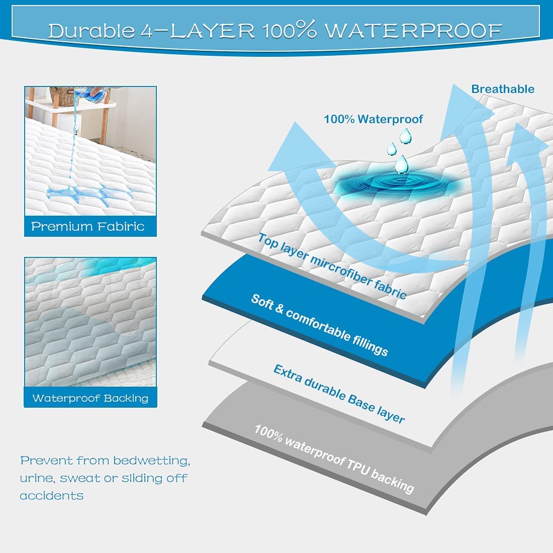 Package Contents: 1 Mattress Protector |Waterproof Protective Layer: Eco-friendly TPU backing provides you sound and healthy sleep by keeping your mattress noise-free, stain-free, liquid-free, and bacteria-free.