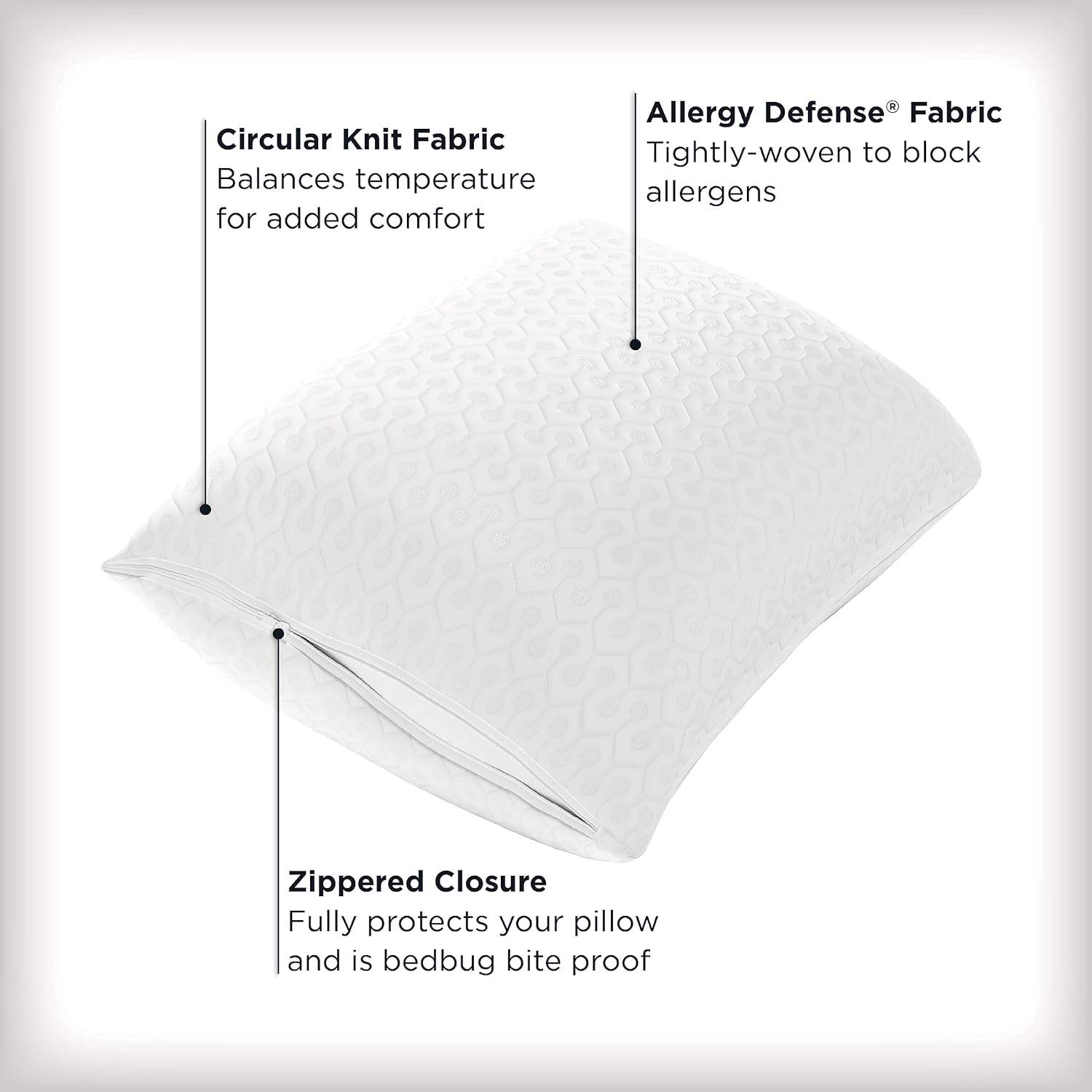 ALLERGY DEFENSE FABRIC: Tightly-woven construction blocks unhealthy household allergens from passing through the fabric and collecting in your pillow.
