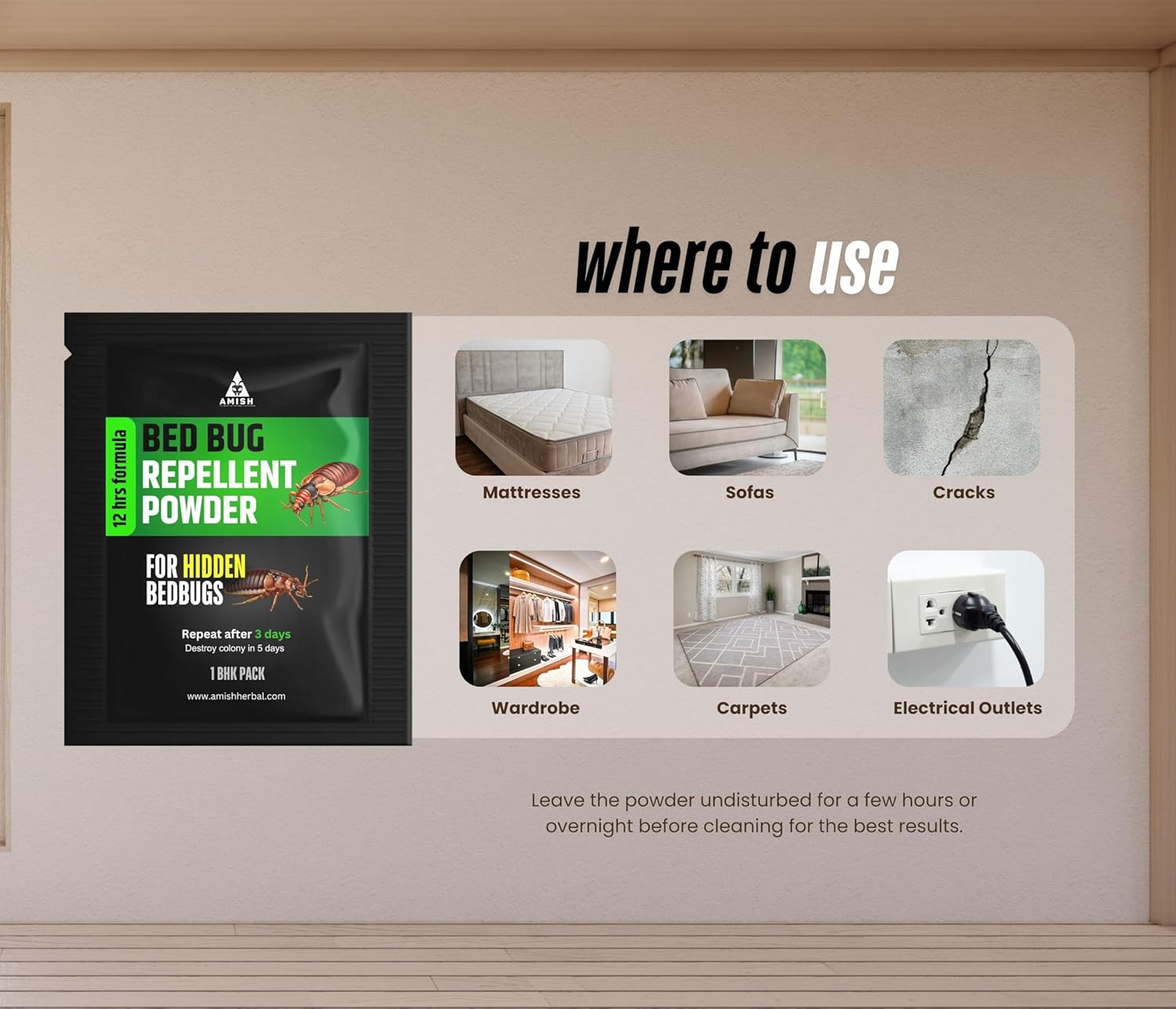 MADE WITH HERBAL INGREDIENTS: Amish Bedbug Powder is made with blend of herbal ingredients to ensure safe effective bedbug control. The natural formulation makes it eco-friendly free from harmful chemicals, offering safe alternative to chemical sprays. this herbal-based solution ensures your home is free from pests while maintaining chemical-free environment. Ideal for households with kids pets, herbal ingredients make it safe for use in sensitive areas.