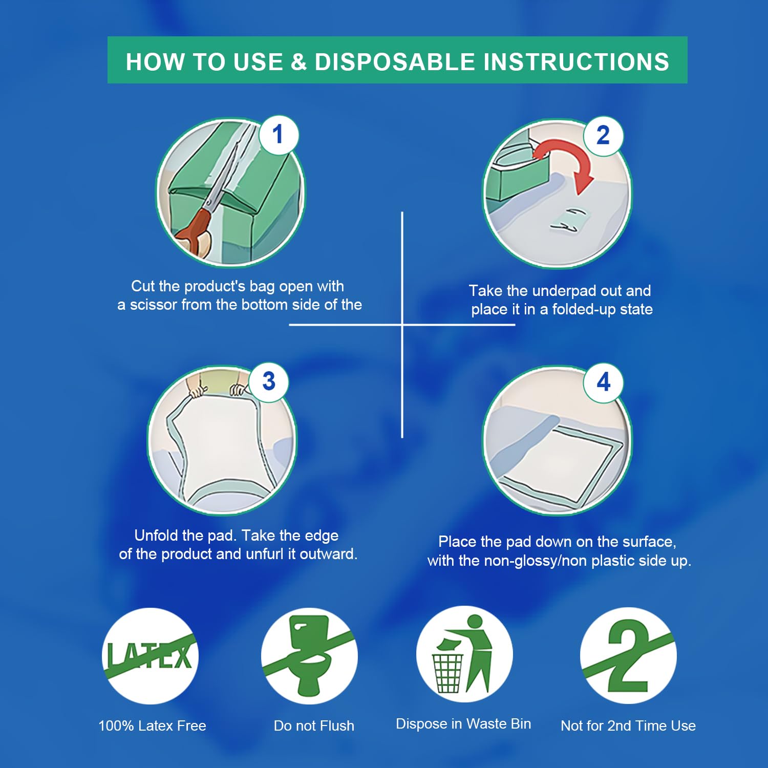 WATERPROOF – Avoid Messy Puddles or Irritation – Incontinence bed pads are designed to absorb liquids quickly and safely, which is important for minimising skin irritation