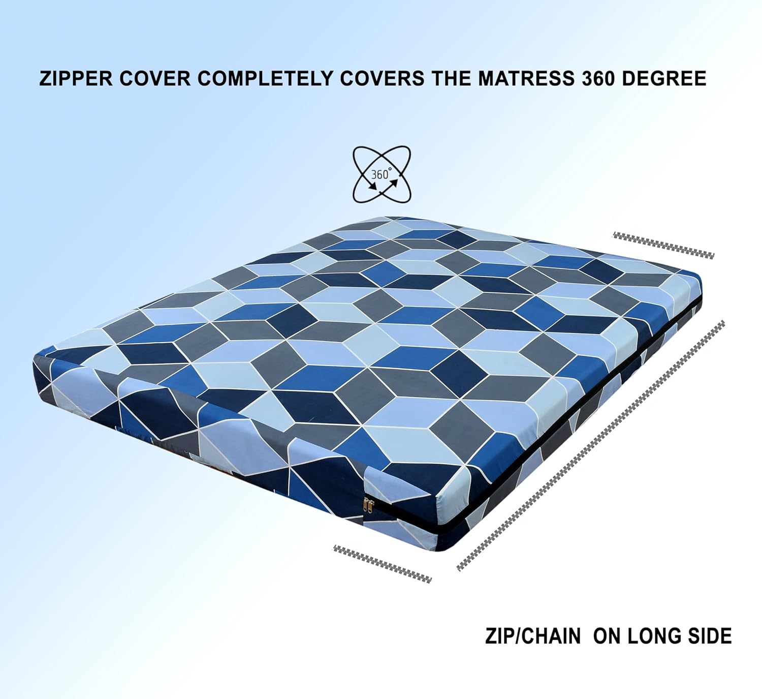 Crafted from 100% cotton with a 300 thread count, this mattress cover boasts a soft, breathable, and durable fabric that will withstand repeated washing and use. The high-quality chain zipper/chain closure ensures a secure fit, preventing the cover from shifting or coming off during use.