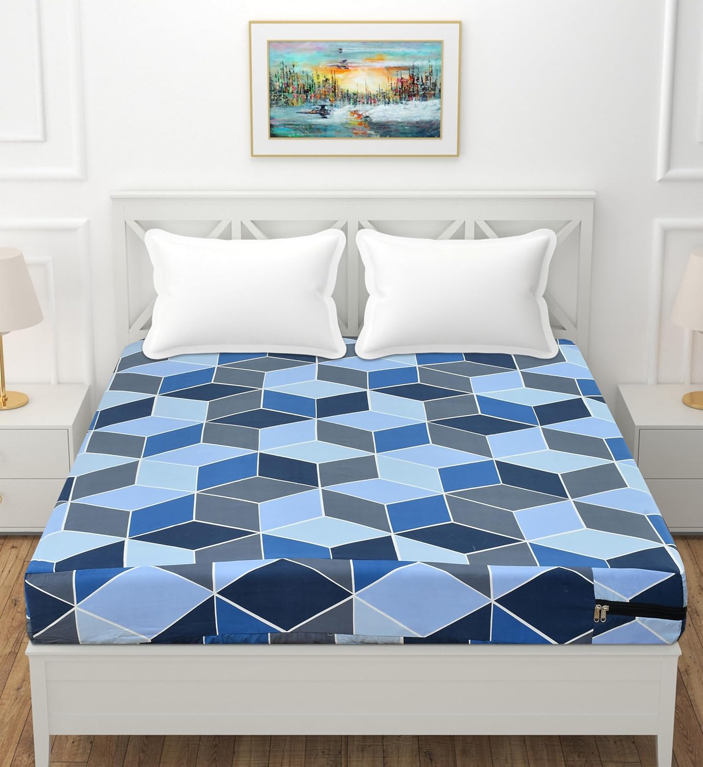 Experience the perfect blend of style, comfort, and protection with the Asian Handloom Cotton 300TC 5×6.5 feet Queen Bed Mattress Cover Protector. Designed to fit your queen mattress snugly, this cover safeguards your mattress from dust, dirt, and spills, ensuring a clean and hygienic sleeping environment.