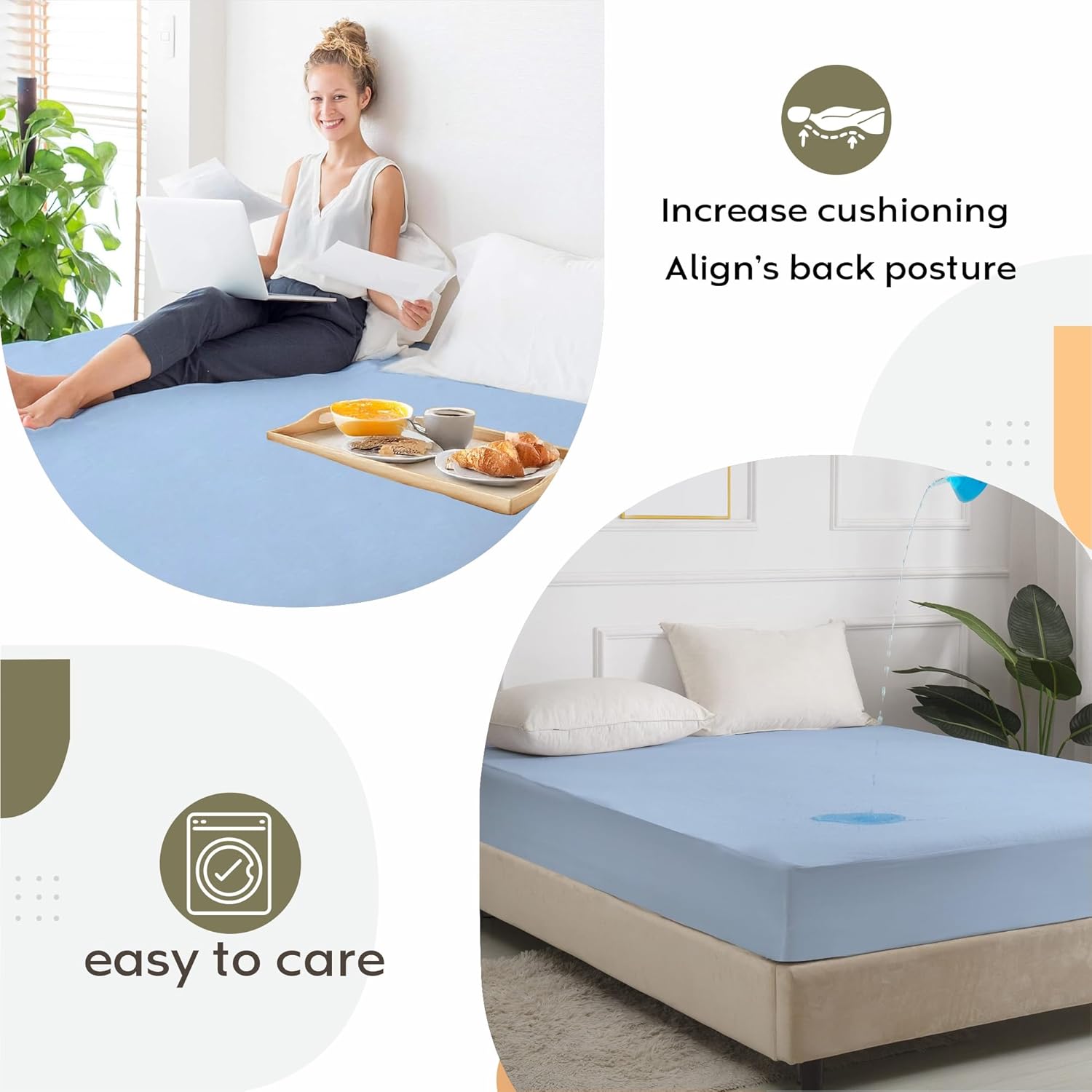 Waterproof :It protects your mattress from all types of liquids spills like beverages, sweat, urine, Stains in Women’s period, pet accidents, prevent fluid accidents from permanently soiling your mattress.