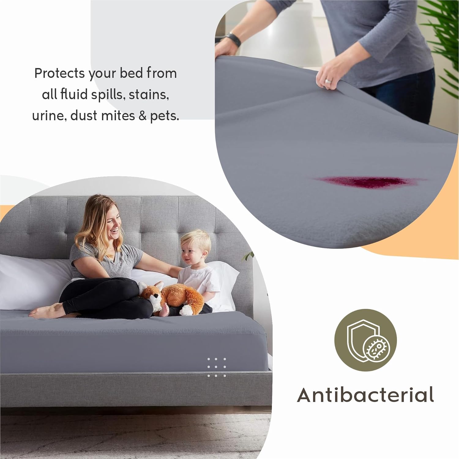 Waterproof :It protects your mattress from all types of liquids spills like beverages, sweat, urine, Stains in Women’s period, pet accidents, prevent fluid accidents from permanently soiling your mattress.