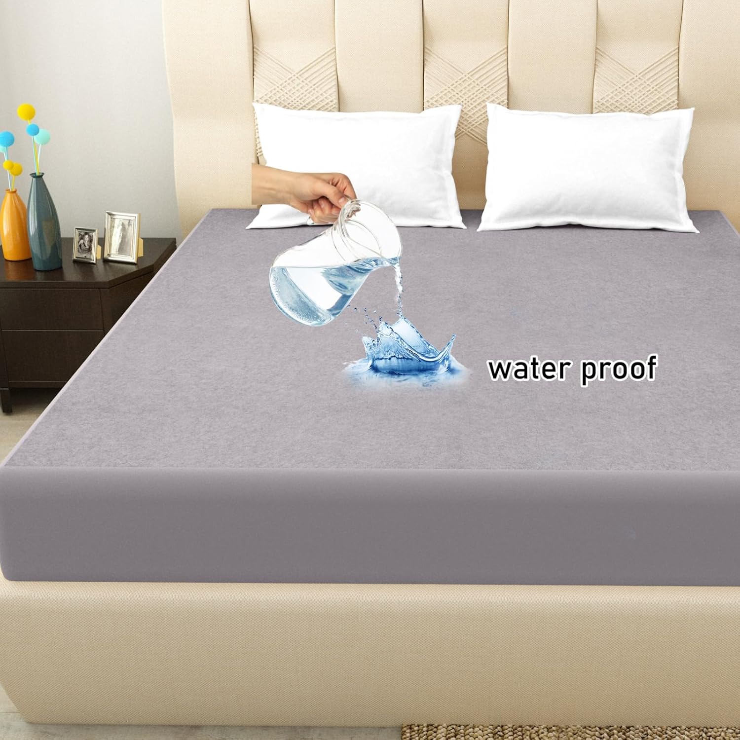 BAARIKI 100% Waterproof Premium Cotton Feel Mattress Protector | Breathable and Hypoallergenic Ultra Soft Fitted Bed Protector Cover (Gray, 72 * 78)