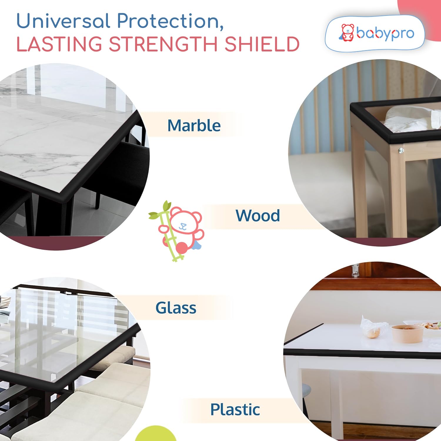 INSTALLATION: FOR BEST USE, PLEASE CLEAN THE AREA WITH A DAMP CLOTH TO WIPE OFF ANY DUST OR DIRT PARTICLES & THEN MAKE SURE THE SURFACE IS DRY BEFORE STICKING THE PRODUCTS. THIS WILL ENSURE THE ADHESIVE STICKS WELL TO THE SURFACE & STAYS THERE LONGER! ALSO, APPLY THE TAPE ON THE EDGES OF THE EDGE GUARD. HAPPY BABYPRO’S PANDRO MEANS HAPPY PROPARENTS 🙂