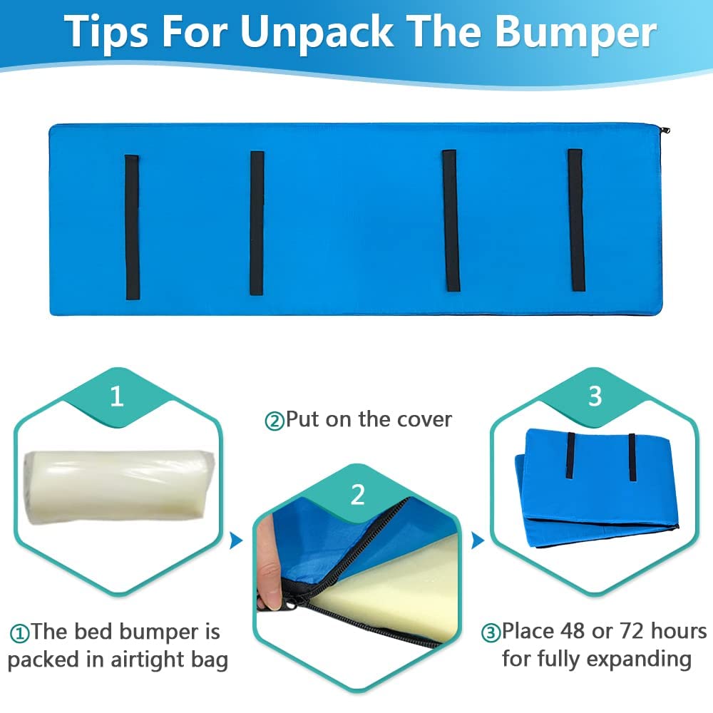 EASY INSTALLATION -Bed bumper with straps fixes on bed rails, the height of pads position is adjustable, also allows to fold easily for transit or storage.
