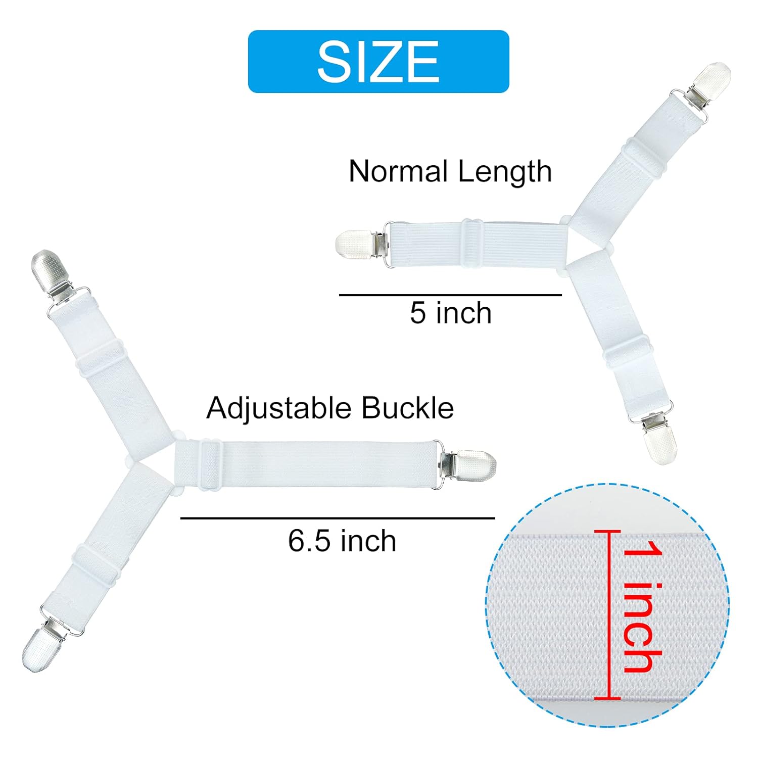 ✔Durable And Adjustable: Adjustable lock making straps usable on different sized beds, Sheet suspenders queen, king& twin; Bedding accessories.