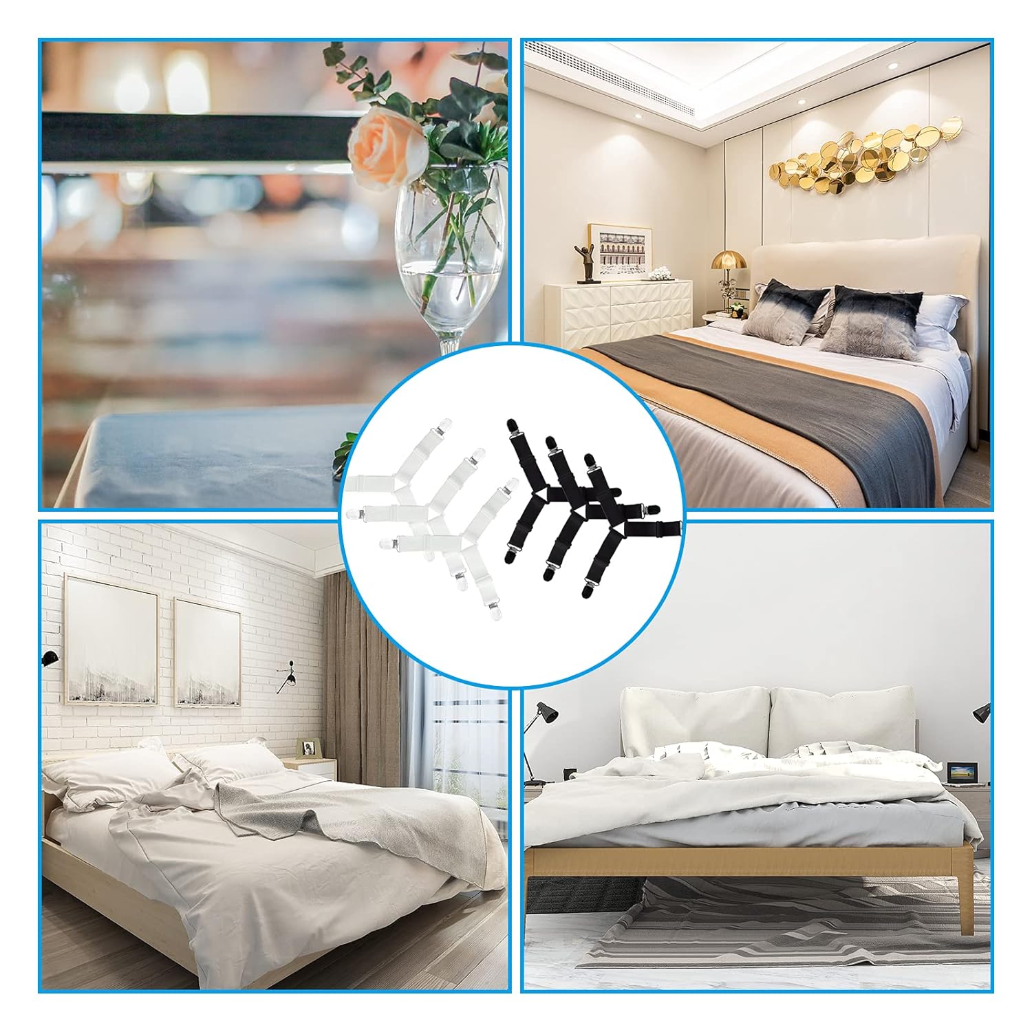 ✔Multipurpose: These Bed Sheet Grippers Work with All Types of Bedding such as bed sheets, mattress pads, tablecloths, ironing board covers, slipcovers and more. ; High Quality and Eco-friendly Elastic Nylon Straps for Simple Bedside Installation