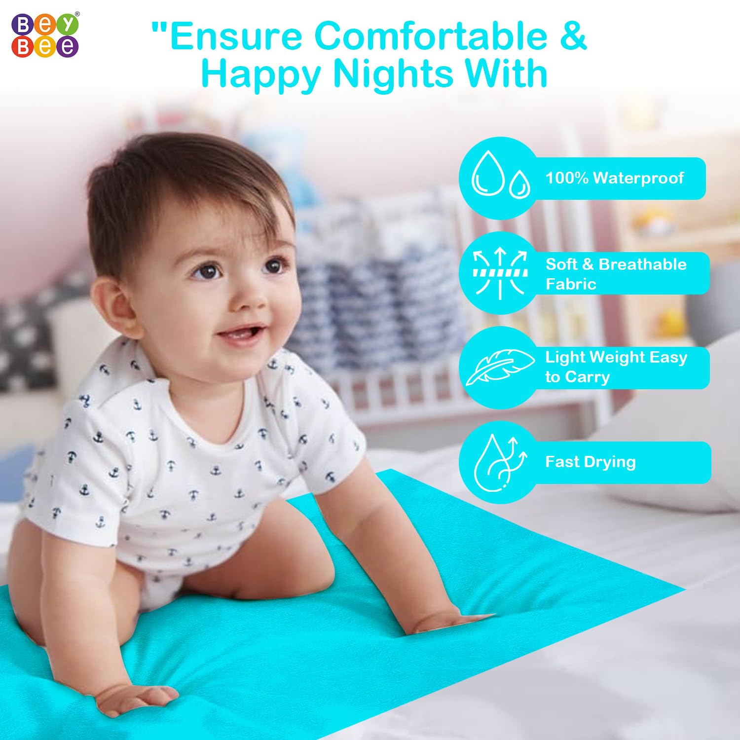 Water proof Bed Protector: BeyBee waterproof BABY Dry sheet allows no stagnation of body liquid and also prevents any excess dampness from getting in.