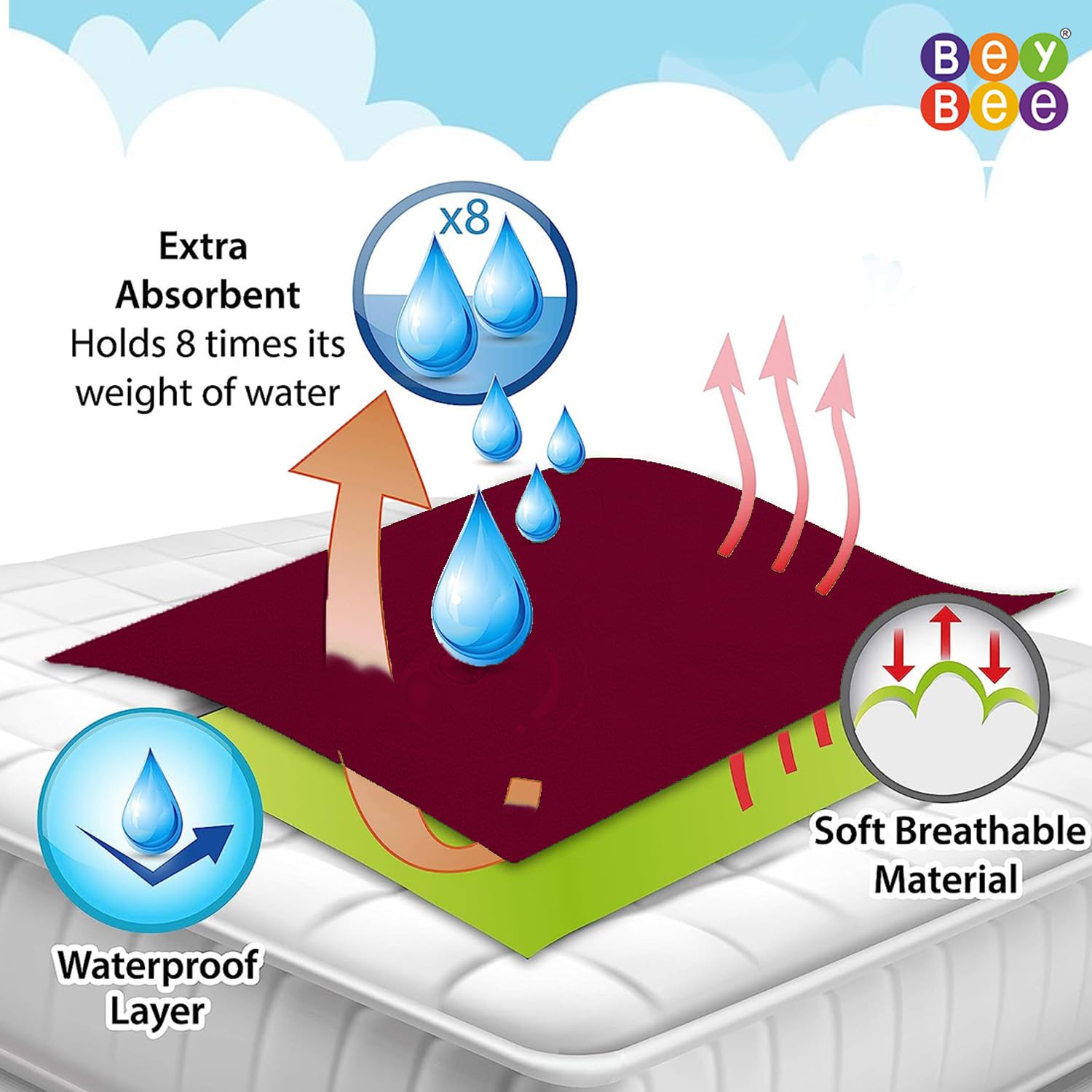 Premium quality: BeyBee waterproof bed protector absorbs and holds 8 times its weight of water to comfort your baby on his day’s nap, night’s sleep, dressing up or playing time. This lightweight baby urine sheet waterproof, crafted with the premium quality fabric, our baby bed protector offers soft feel to touch even on a rough bed surface]