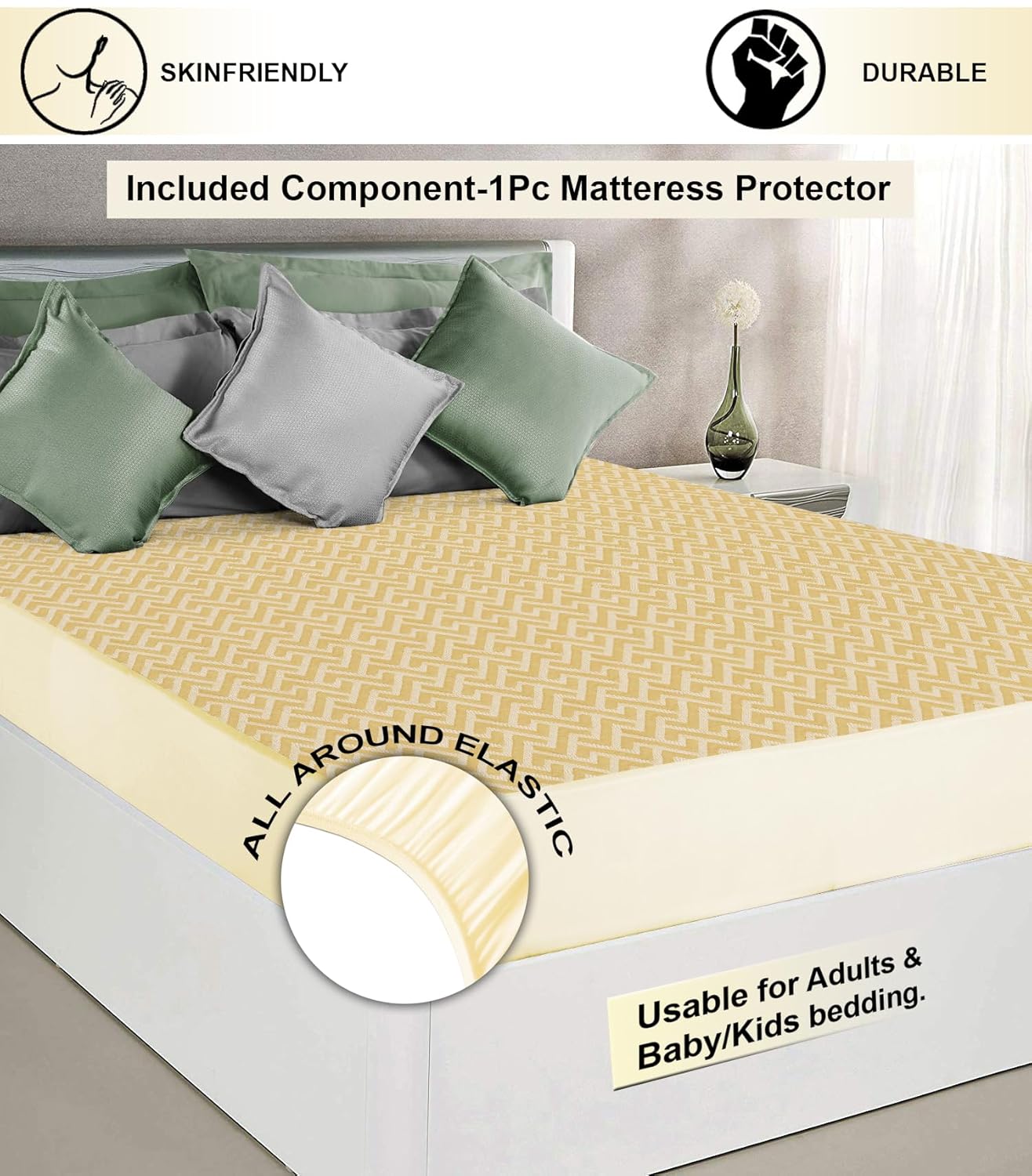 2 layers protection: The top layer soft terry 220 gsm, 2nd layer is TPU laminated sheet which makes the mattress protector 100% waterproof and noiseless with Unique craftsmanship design