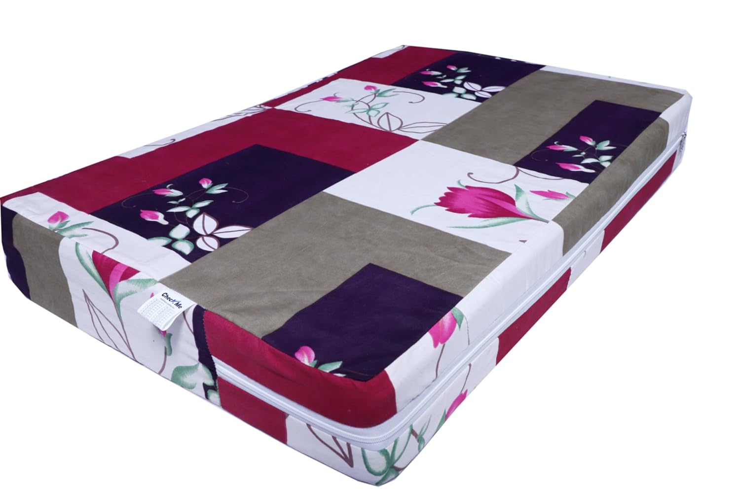 Protect your mattresses from dust, dirt, mites, stains, allergens, and bed bugs with the CHECKME mattress cover, suitable for a king size bed measuring 72x75x5 inch. This mattress cover is made of glace cotton fabric, and the glace cotton surface makes your mattress more comfortable. Our mattress cover features a durable zipper closure that fully encases your mattress. This secure closure ensures a snug fit, effectively safeguarding your mattress against spills, stains, allergens, dust mites, and even bed bugs. It covers all the sides of the mattress. A zip across the length makes it easy to remove and cover. It is made of a high-quality chain with a pair of metal locks, and interlocking inside stitches make it long-lasting. This mattress cover is not waterproof. Please check the size of your mattress before ordering. Measure the width, length, and height of your mattress.