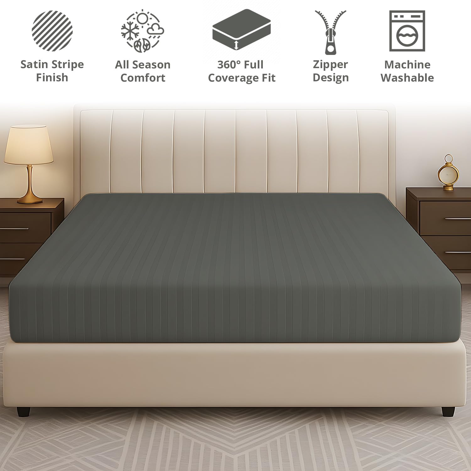 Cloth fusion Glace Cotton Mattress Protector King Size with Zipper, Breathable & Lightweight Bed Protector King Size for Mattress Protection with 360 Secure Fit (78×72 inches, Grey)