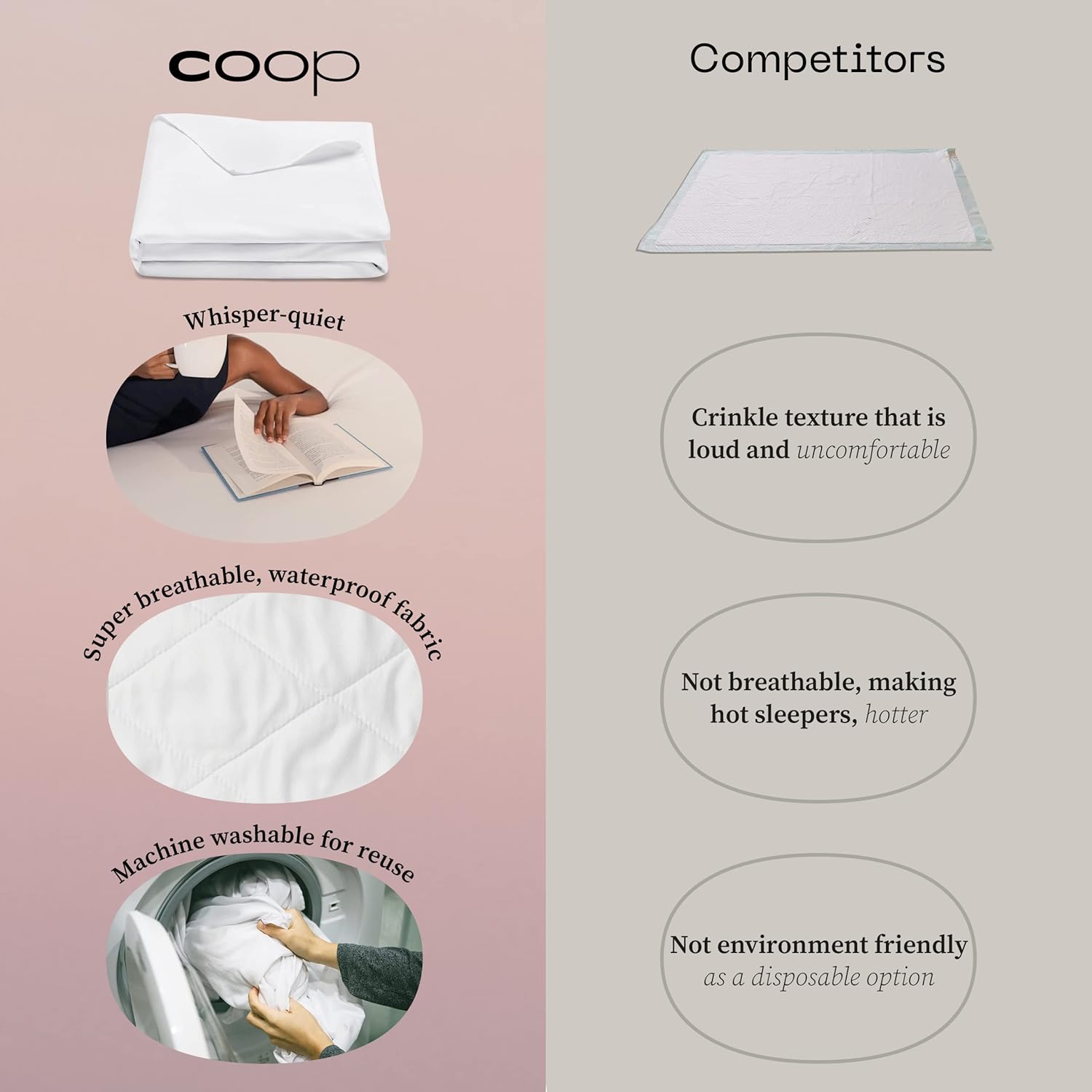 The Coop Home Goods Incontinence Pad provides the ultimate line of defense against perspiration, incontinence, pets, and any other fluid that can wreck your mattress. Featuring an innovative 4-layer design, the pad protects your mattress without the noise and discomfort found with pads made of vinyl or PVC. Designed with extra-long, tuckable sides that go under your mattress, you can feel secure knowing that the pad will stay in place all night regardless of movement. Our premium quality Incontinence Pad can absorb 6 cups of water, protecting your precious mattress. Breathable and soft, our pad ensures the best night’s rest possible. It’s easy to care for and machine washable, so you can save money as you go. Please reach out to us directly with any comments or questions—we’re happy to help!