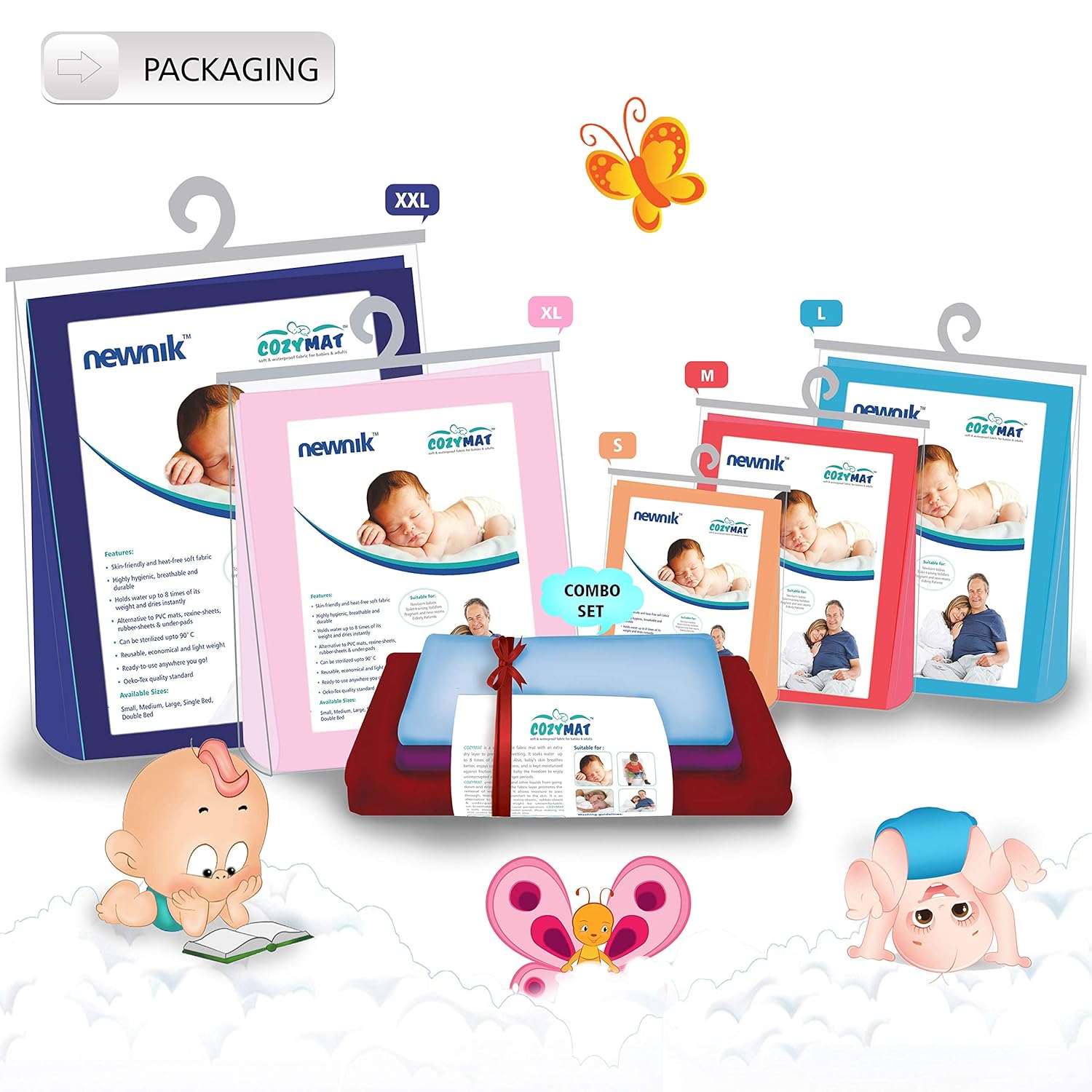COZYMAT is a comfortable fabric mat with an extra dry layer to prevent bed wetting. Also, baby’s skin breathes better, enjoys cottony softness, and is kept moisturized against friction. Give your baby the freedom to enjoy uninterrupted sleep for longer periods. COZYMAT prevents urine and other liquids from going down and dries faster as the fabric layer promotes the removal of water vapor. It allows moisture to pass through, thereby giving comfort to the skin. It is an alternative to PVC mats, rexine-sheets, rubber-sheets & under-pads, which might be uncomfortable, un-breathable and may cause perspiration. COZYMAT is soft, absorbent and water-proof, thus, making the mat usable for babies & adult also.