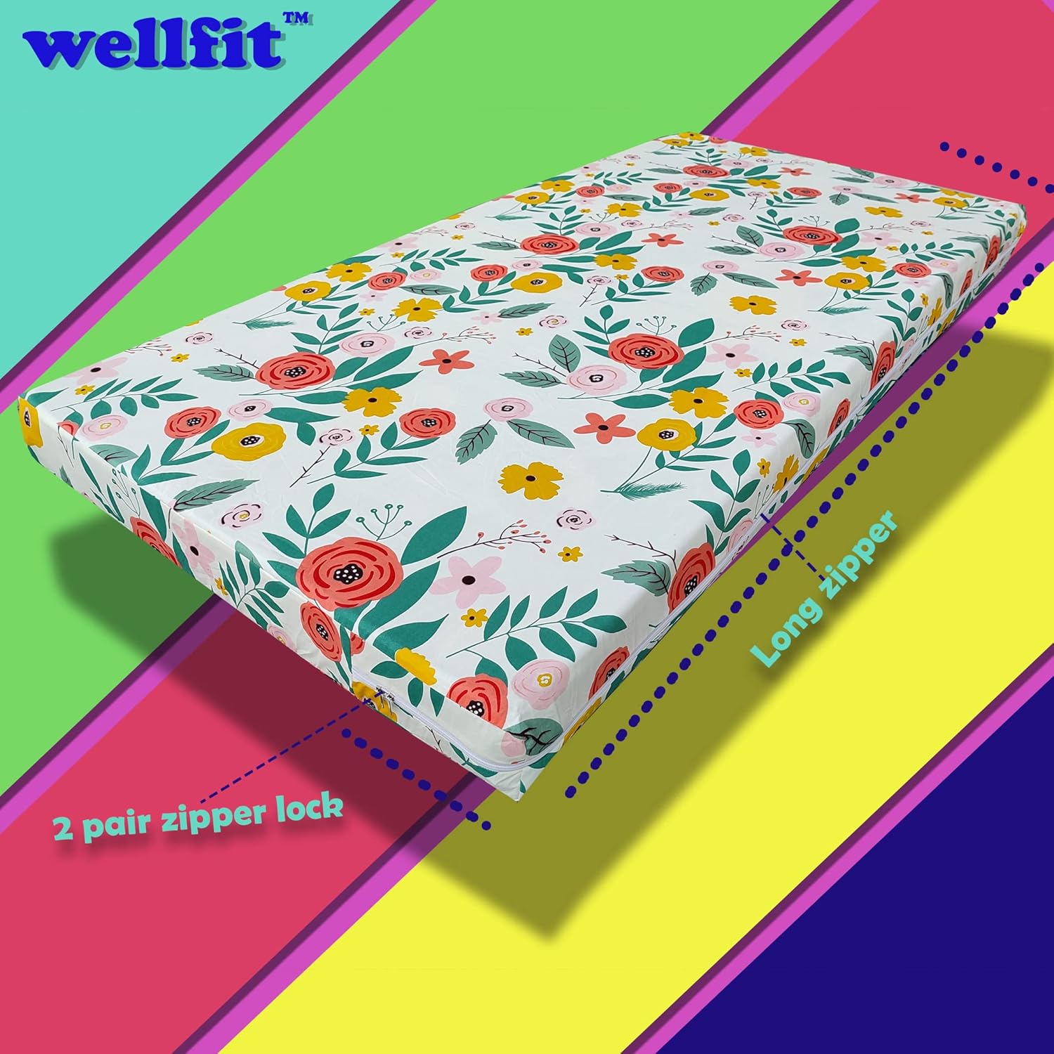 WELLFIT Cotton mattress cover for protect your mattress all side best quality .It covers all the sides of mattress. Zip across length makes it Easy to remove and cover .Heavy fabric, Superior quality chain with pair of metal locks , Inside stitches interlocking makes it lifelong .These covers are one inch bigger on both sides than the size mentioned so same size of covers can be ordered for same size of mattresses..package including 1 cover.