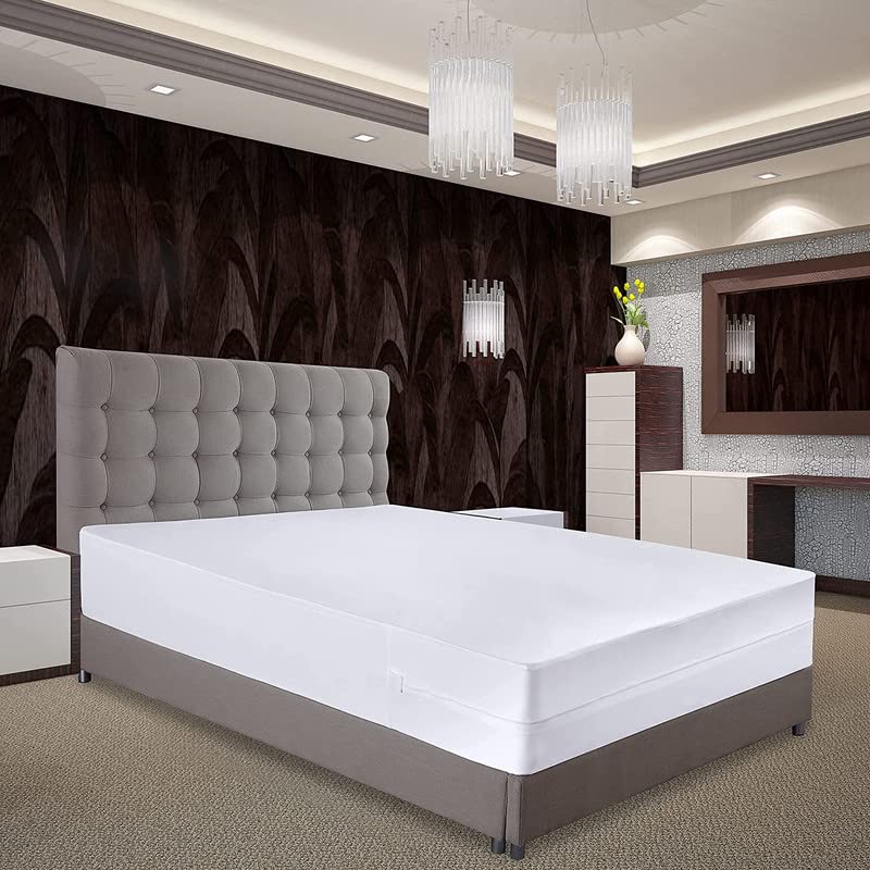 WATERPROOF MATTRESS PROTECTOR WITH ZIPPERS This waterproof mattress protector from the house of Edenwald is breathable and prevents any seepage on or into the mattress. It is a high-tech mattress protector that repels liquids or spills of any type. These 6-sided complete protection characteristics let you keep your mattress protector for a very long time by ensuring that it maintains high hygiene and enduring freshness. The top layer of our mattress protector is constructed of incredibly absorbent cotton terry, which regulates body temperature and keeps your protectors quiet and cool. Additionally, our mattress protectors provide defence against dust mites, liquids, urine, perspiration, and allergens, making them particularly beneficial for people with children, pets, allergies, or incontinence.