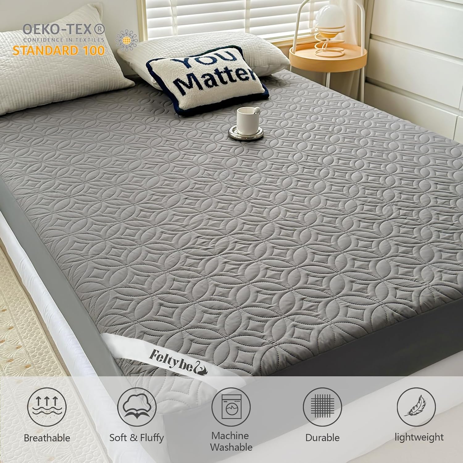 100% WATERPROOF MATTRESS PROTECTOR: Are you worried about how to protect your mattress from pee, water and stains? FELTYBED mattress cover is filmed with upgraded TPU to provide waterproof protection, and the TPU waterproof layer effectively prevents sweat, body fluids and other accidental spills,great for those with elder or incontinence. No more frustration about accidents happening.