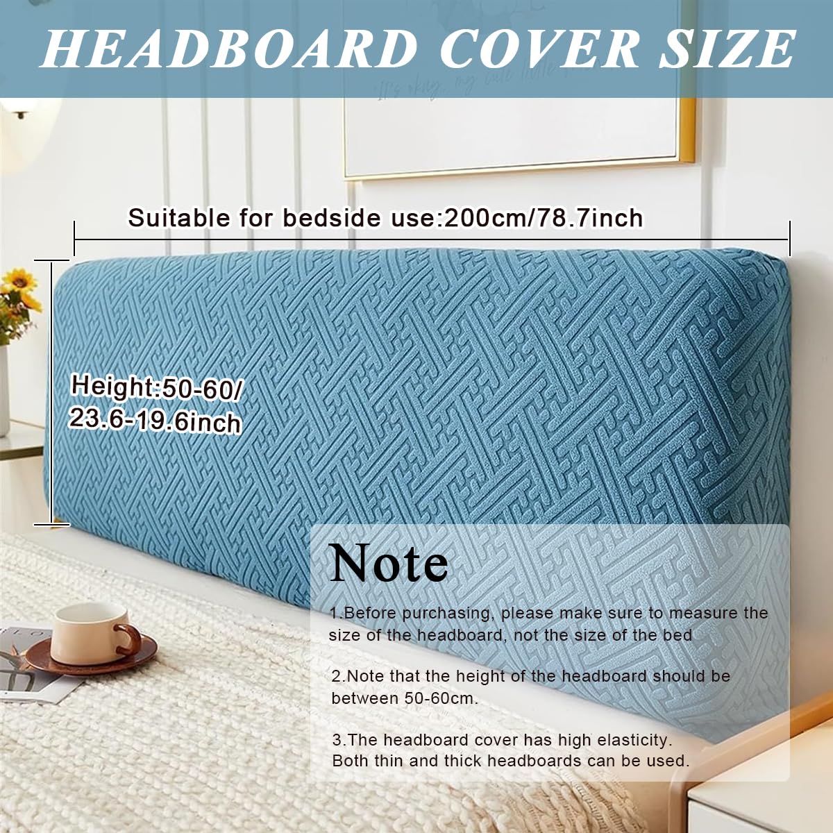 SIZE AND FIT CUSTOMIZATION: Tailored to accommodate most full-size bed headboards ranging between 75-82.6 inches, this bed headboard cover is crafted with flexible, stretchy Polyester fabric. The inclusion of an elastic closure ensures that the cover fits snugly, presenting a clean and refined appearance without slipping or bunching.