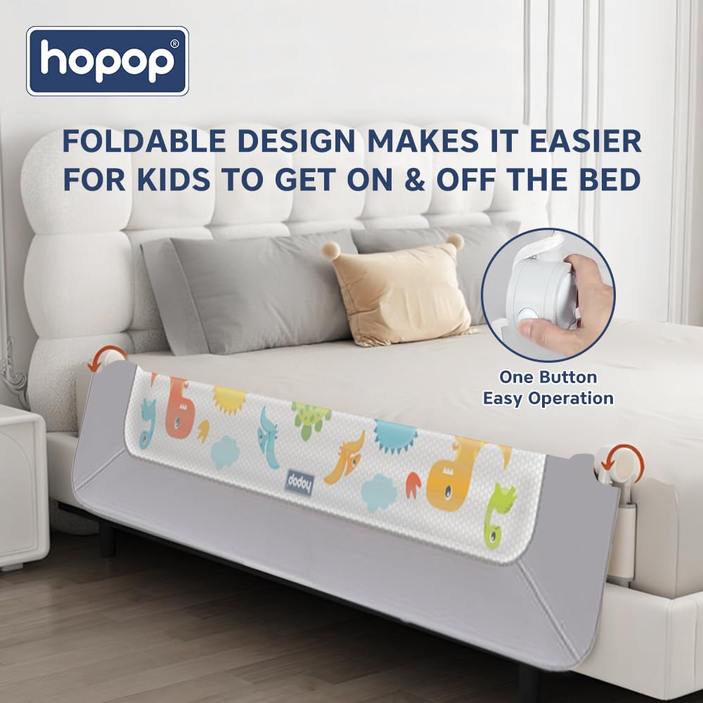 CONVENIENT FOLD-DOWN DESIGN: With a user-friendly fold-down feature, this bed rail provides easy access to the bed, facilitating quick tasks such as changing sheets or comforting your baby during the night.