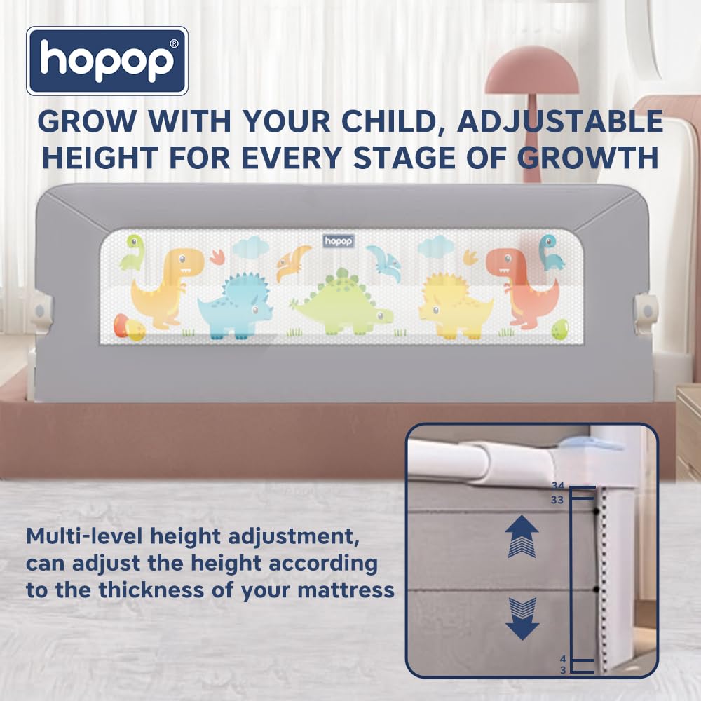 EASY INSTALLATION WITH ADJUSTABLE HEIGHT: Easy to set up, our bed rail is compatible with most standard-sized beds and features an adjustable height for a customized fit, offering parents a hassle-free solution.