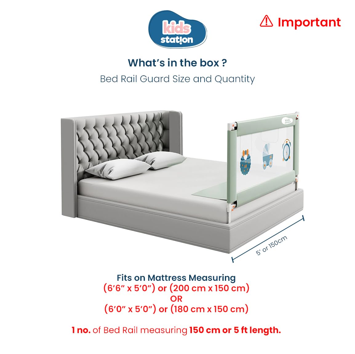 2) KINDLY NOTE: The bed rails are designed to cover a length of 150/180/200cm when placed on all three sides of the bed. Individually, the bed rail will be of 147/177/197cm, as different designs and constructions of bed are also taken into consideration.