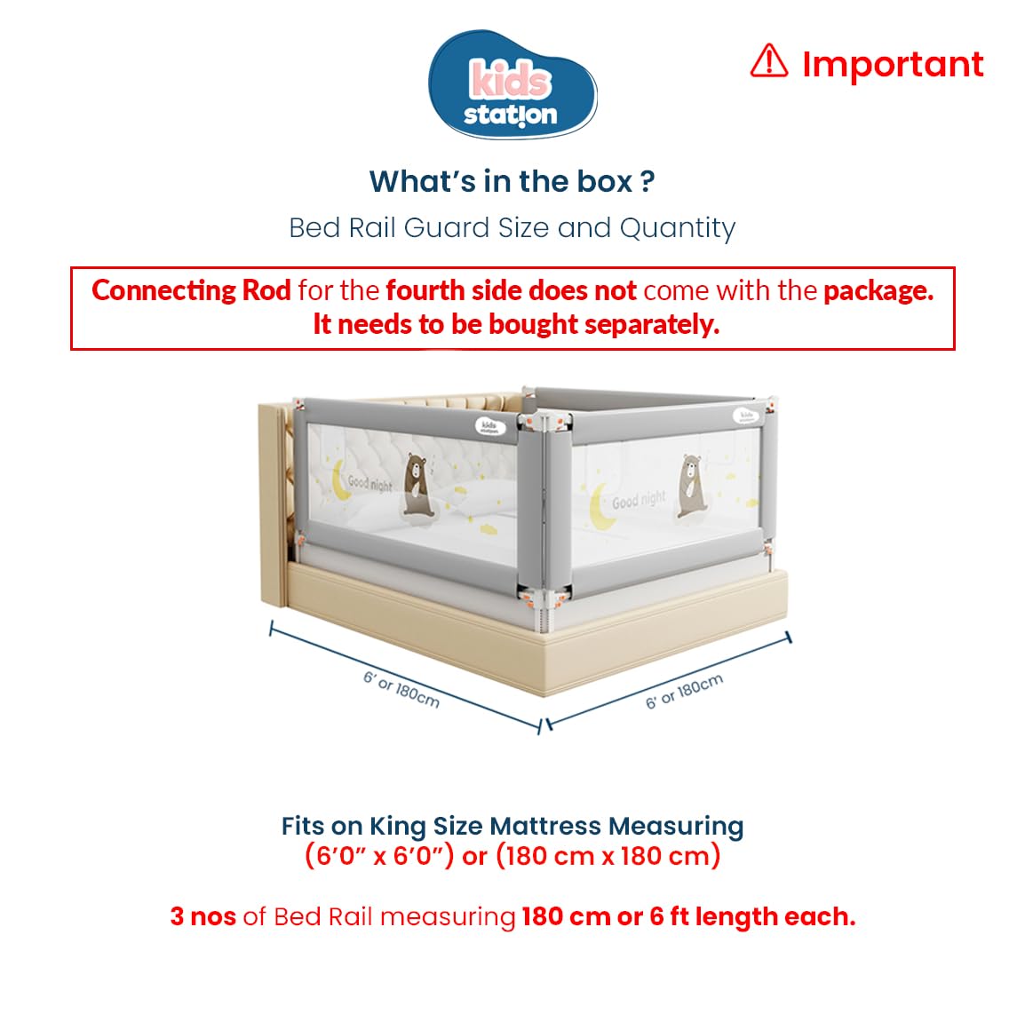 2) KINDLY NOTE: The bed rails are designed to cover a length of 150/180/200cm when placed on all three sides of the bed. Individually, the bed rail will be of 147/177/197cm, as different designs and constructions of bed are also taken into consideration.