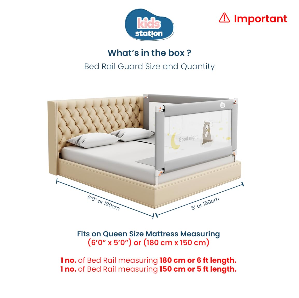 3) EXTRA LONG AND TALL: 6ft and 5ft long bedrail (hinge point) and extendable upto 80cms height for added security. The child cannot climb out and fall, prevents your baby from falling down from the bed.