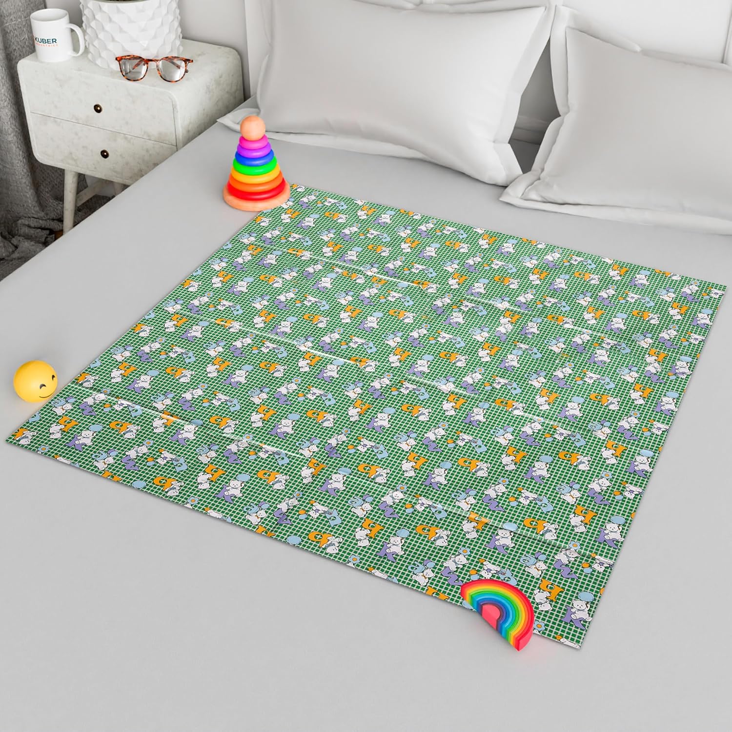 { PACKAGE CONTAIN } : 2 Piece Baby Sheet | Reversible | Teddy Bear | MATERIAL : PVC | PACKAGE DIMENSION : 100 cm x 100 cm x 1 cm