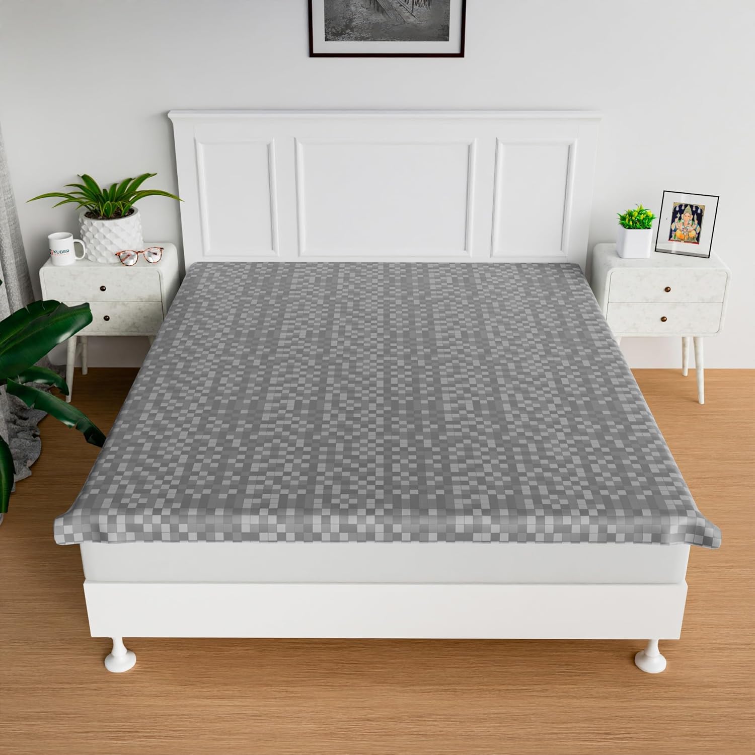 PACKAGE CONTAINS : 2 Piece Mattress Protector | Check Design | 80×80 Inch | MATERIAL : PVC | PACKAGE DIMENSION : 203 cm x 203 cm x 1 cm