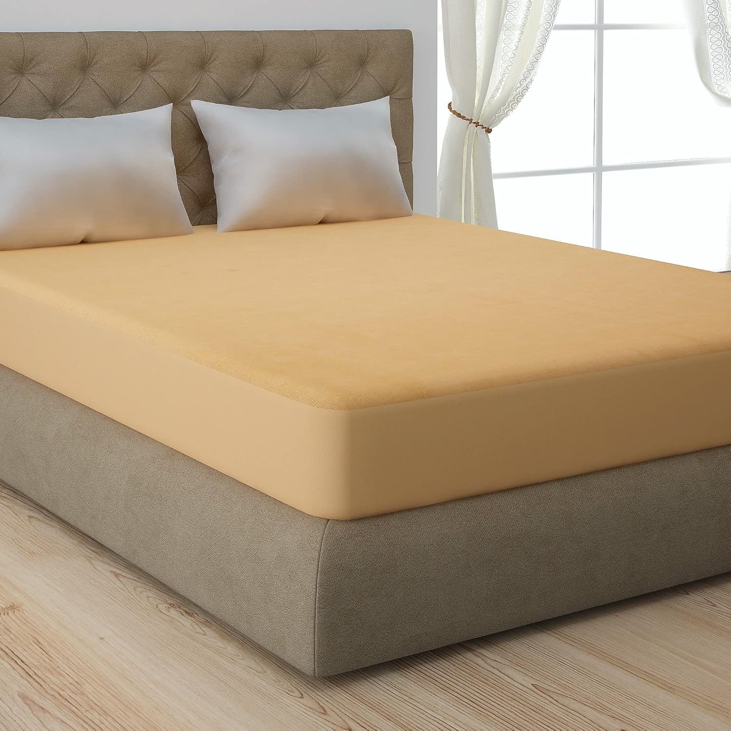 Protector Feel: Soft and textured | Material Type: 200 GSM terry cotton surface with TPU film | Elastic for tucking in the corners