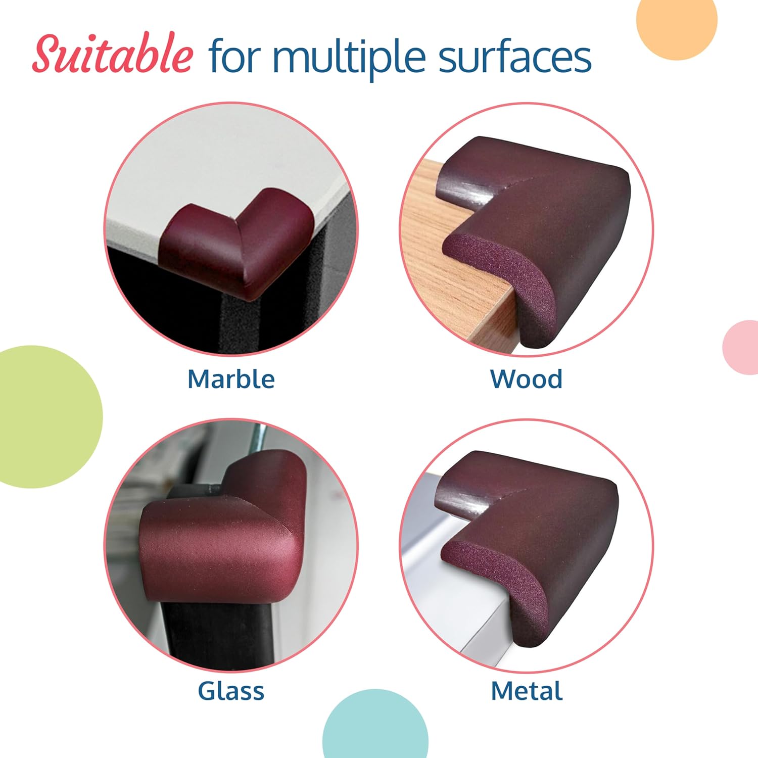 LuvLap range of Baby safety items ensure your baby is safe from all possible dangers and ensures your peace of mind. The LuvLap Furniture Corner Guard Set keeps babies safe by preventing them from getting injured from sharp corners of furniture. It can be easily applied and removed, leaves no traces and doesn’t damage the furniture. This high quality product is, fashionable, durable, non toxic and safe. It keeps cabinets, drawers, and cupboard baby safe. The Adhesive pads make them firm. The design blends well with furniture. Does not become sticky with prolonged use even in extremely hot weather. Babyproof your home effortlessly