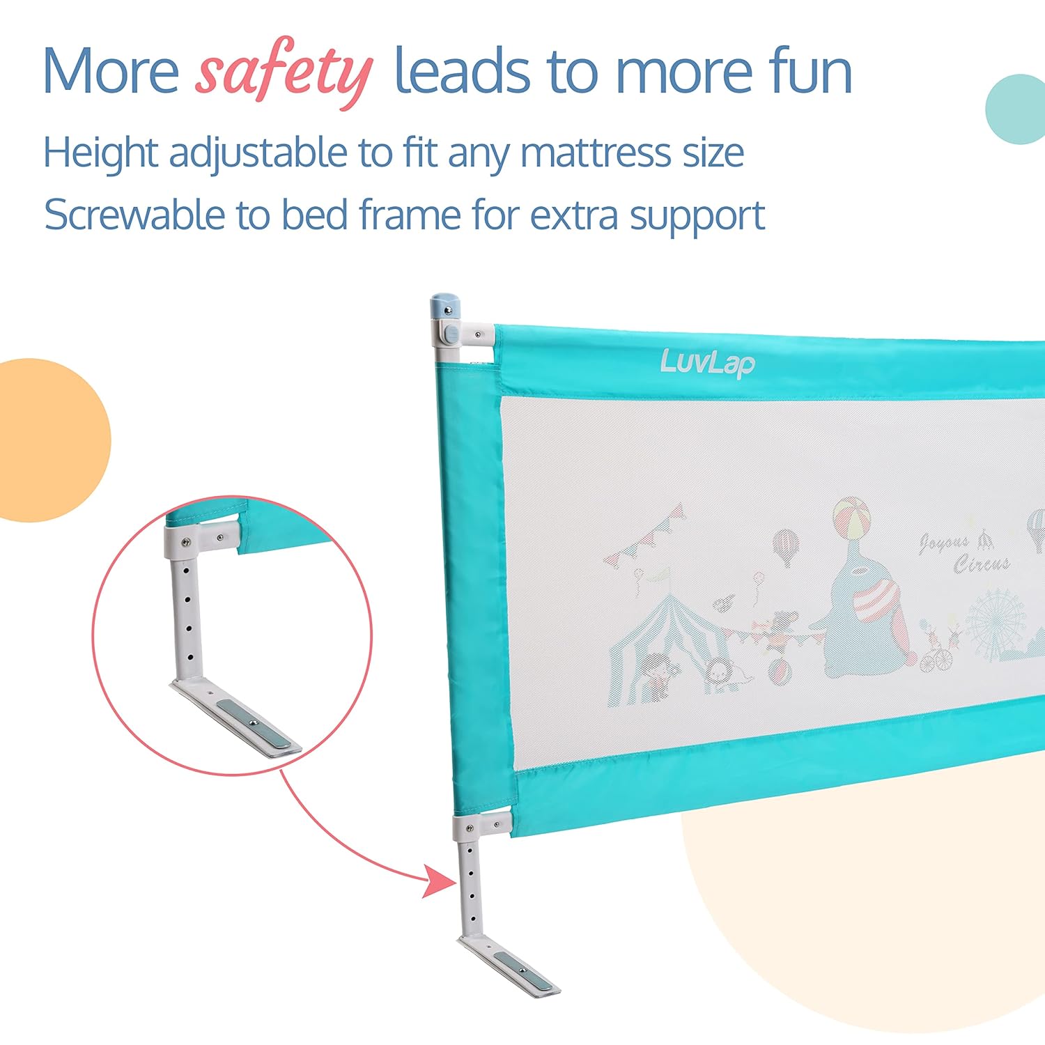 Introducing LuvLap premium baby bed rails, designed to provide utmost safety and security for your little ones during their sleeping hours. Made with high-quality materials, these bed rails are durable and long-lasting, ensuring a safe and comfortable sleeping environment for your baby. These bed rails are easy to install, perfectly fits on any standard-sized bed. They are also lightweight and portable, making them ideal for travel and storage. These bed rails feature a breathable mesh panel that promotes air circulation and allows you to keep an eye on your child without compromising their privacy. The rail height is also adjustable, providing customizable protection for your growing baby. With its sleek and modern design, these baby bed rails will seamlessly blend in with any nursery decor. These are also easy to clean.