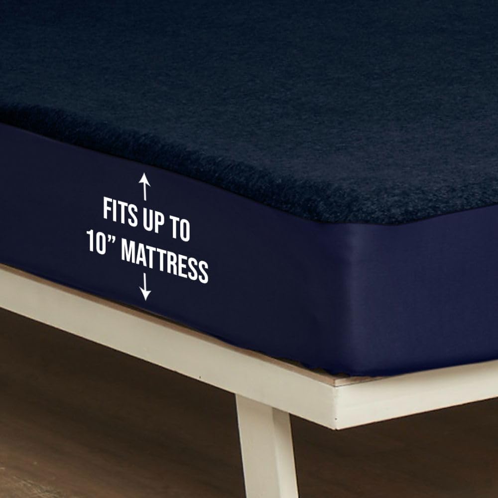 Luxe Layers Cotton Feel Terry 78x72x10 inch Soft Waterproof Blue Mattress Protector King Size | Breathable Hypoallergenic Mattresses Cover for King Size Bed| 6.5×6 feet| fits Upto 10 inches Mattress