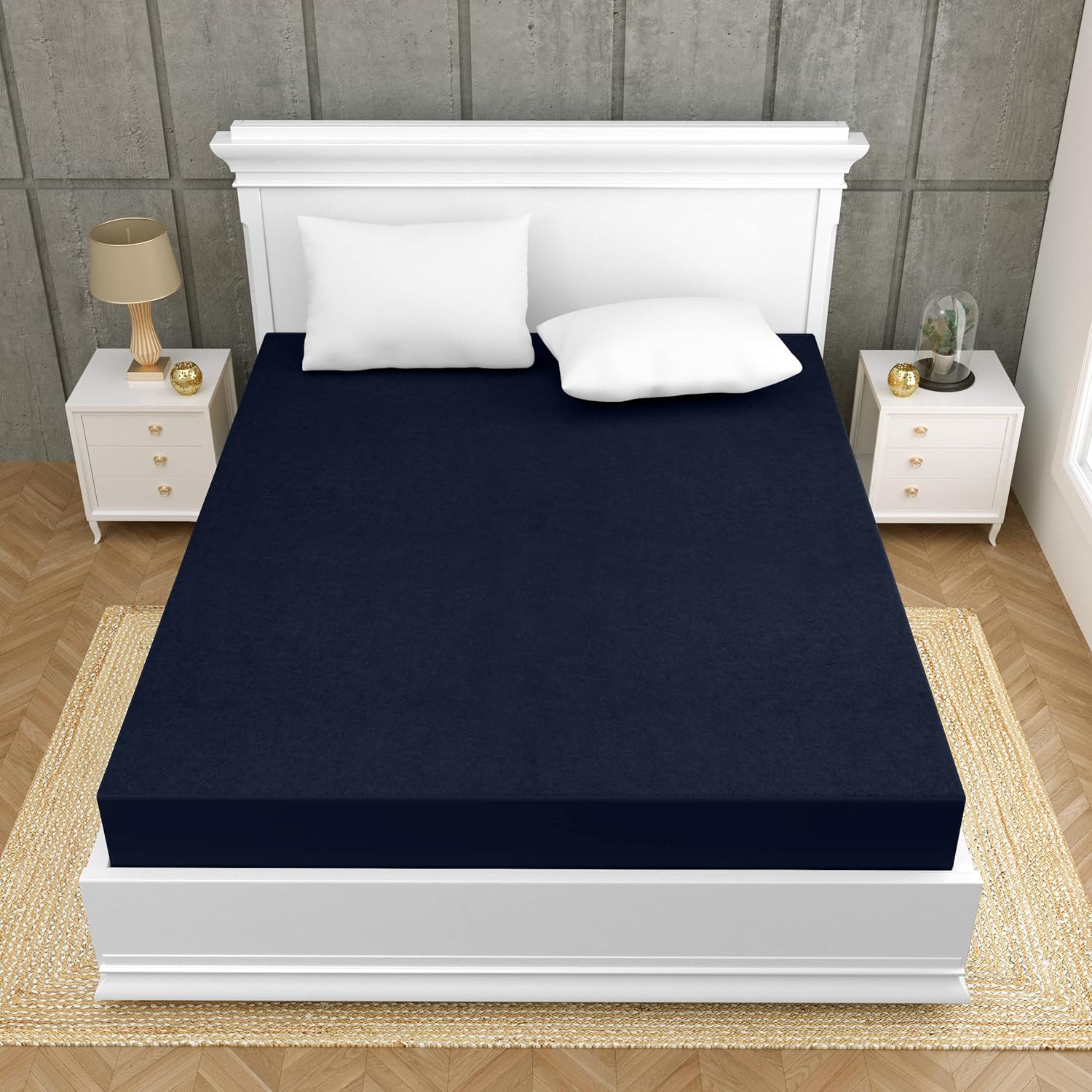 Luxe Layers Cotton Feel Terry 78x72x10 inch Soft Waterproof Blue Mattress Protector King Size | Breathable Hypoallergenic Mattresses Cover for King Size Bed| 6.5×6 feet| fits Upto 10 inches Mattress