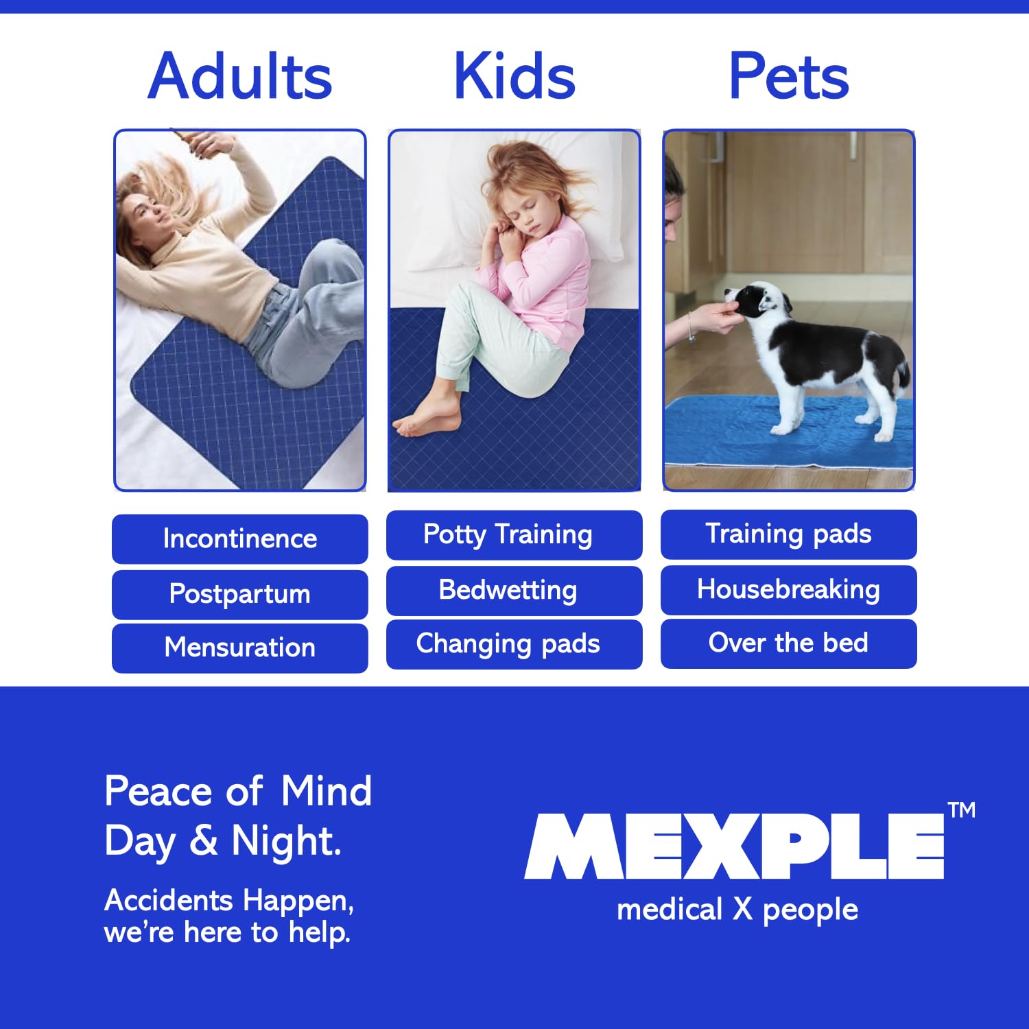 MEXPLE PeeMAXX Under pads provide superior protection with high absorbency and leak-proof design. Perfect for nighttime accidents, ensuring dry, comfortable sleep and easy clean-up for parents.