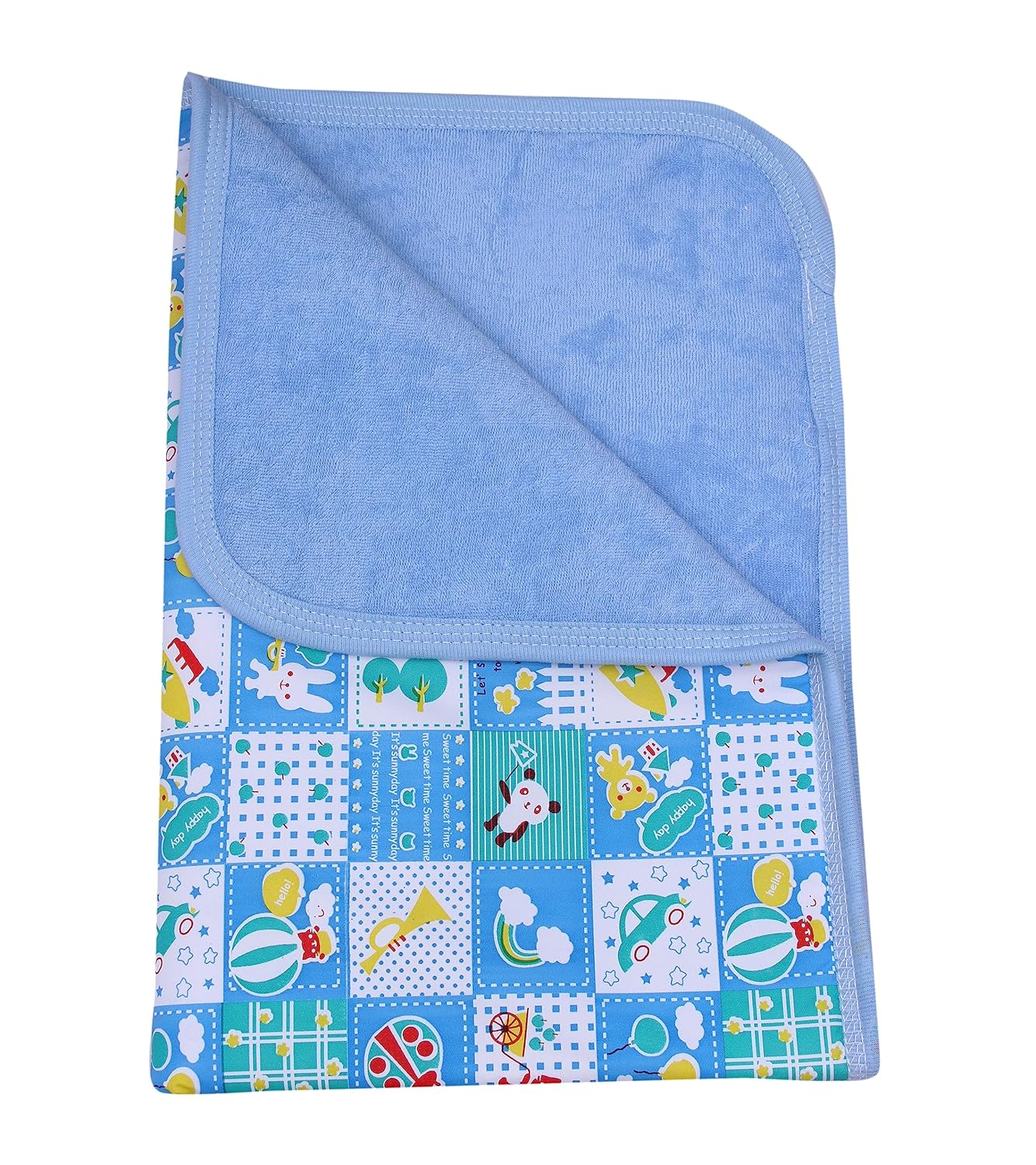 Plastic bed sheet for baby with 3 Layers – The Upper Layer Printed PVC Sheet , the Middle Layer is foam cushioned which keeps the sheet soft and gives ultimate dryness, blocking the liquid to seep through the sheet into the mattress/bed and the Lower Layer is a soft Towel.