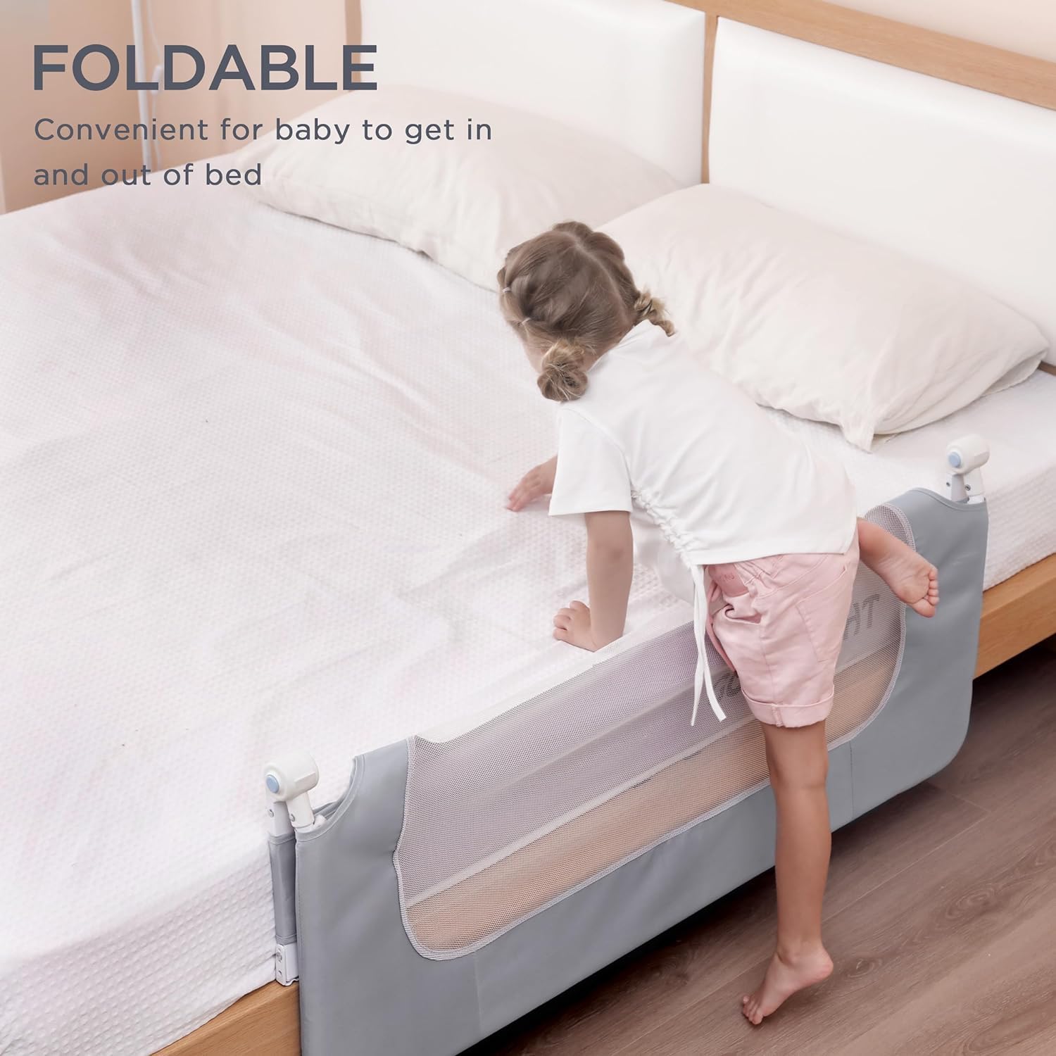 👶It can easily install this Toddler Bed guardrail at home, One-touch folding, one-touch lifting and lowering easy operation.
