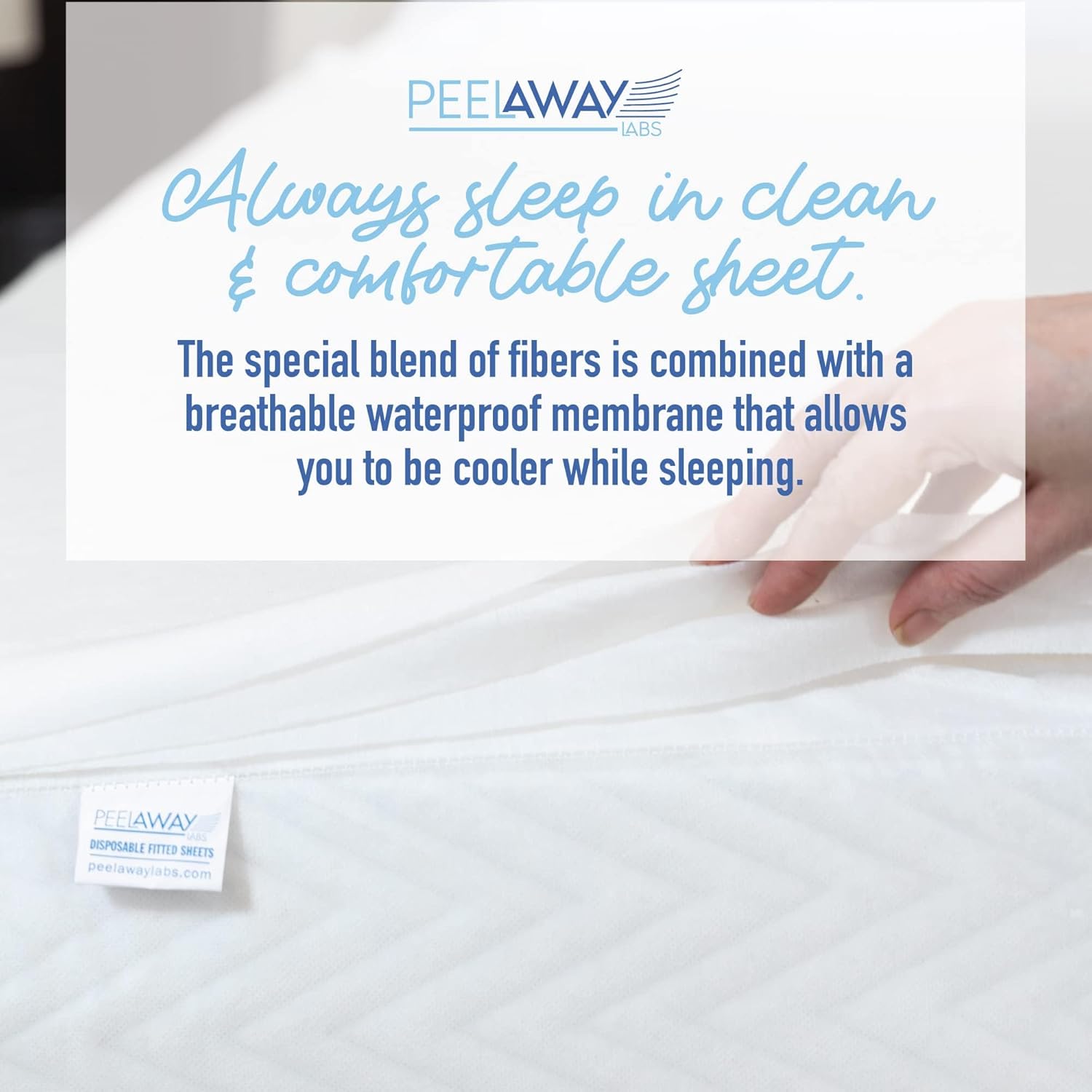 PEELAWAYS New Peel Away Disposable Fitted Mattress Bed Sheets King Size Never wash your bed sheets again with PEELAWAYS! An unbelievably soft and disposable bed sheet, PEELAWAYS allows you to simply tear off the dirty layer without a trip to the washing machine. You’ll get a cool, comfortable night’s sleep every time. The nonwoven blend is absorbent, protecting your sheets from leaks and spills. PEELAWAYS contains polyester, rayon and bamboo fibers to provide a luxurious slumber experience. Sleep soundly with the knowledge that a new fresh sheet is just a layer away. PEELAWAYS can reduce environmental impact by eliminating the need to launder your sheets by saving water and electricity (as well as harsh chemical detergents). We use sustainable viscose and recycled water in our manufacturing process. Our mission is to make our bedding as environmentally friendly by using 45% plant based materials. And we are making strides everyday to keep improving. Water usage for laundering in healthcare facilities can use up to 11% of all available water. WHAT DOES THIS MEAN? Many places such as Capetown in South Africa and some parts of the US have severe water shortages and need to find a way to cut down on their water usage. PEELAWAYS solves this problem. No more hassle of laundry. No more wrestling with the corners to change the bed. Get right back to sleep. Easy to use – provides protection against leaks, messes, spills and dirt. Perfect for elderly, camps, dorm rooms, temporary housing, guest rooms – anywhere! Instructions: Place Peelaways with color stitching at the head of your mattress. Peel down from top corner and along the seams after 7-10 days or when soiled.
