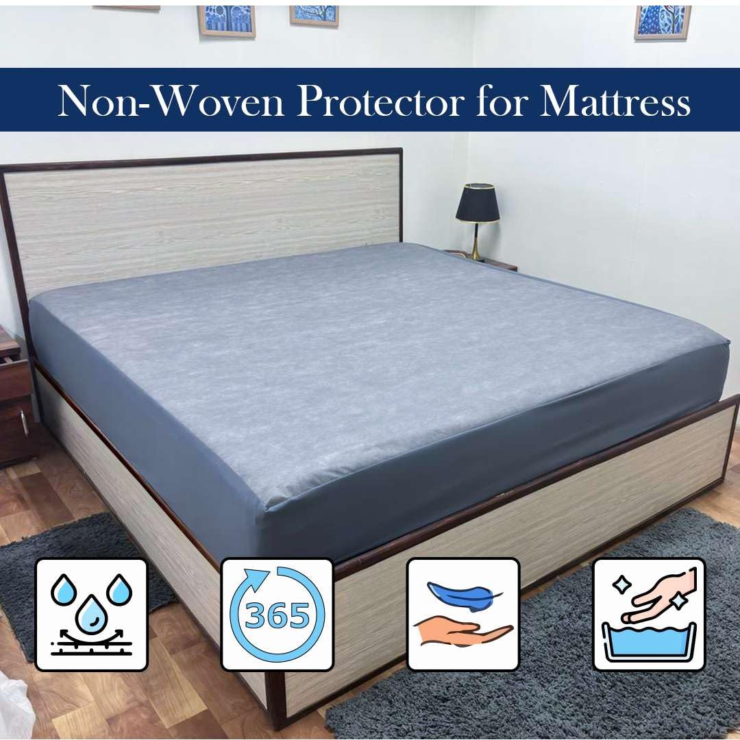 Premium 100% Waterproof Mattress Protector – Designed for ultimate protection, this mattress cover features a durable, elastic non-woven fabric that ensures a snug fit. It effectively shields against spills, stains, and allergens, making it ideal for a healthier sleep environment. Hypoallergenic and ultra-soft, this fitted bed protector enhances comfort while preserving the longevity of your mattress. Perfect for everyday use, it offers a breathable, noiseless, and secure sleeping experience.