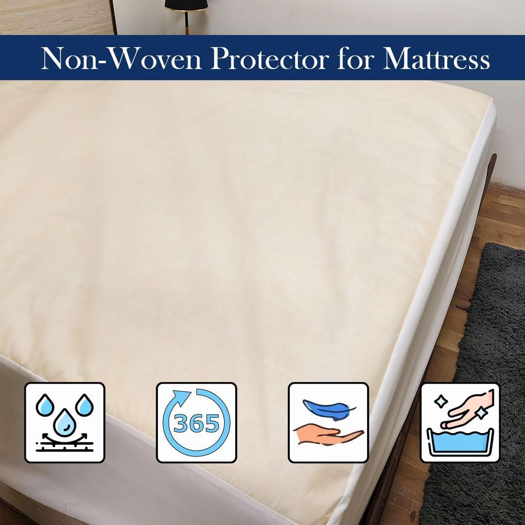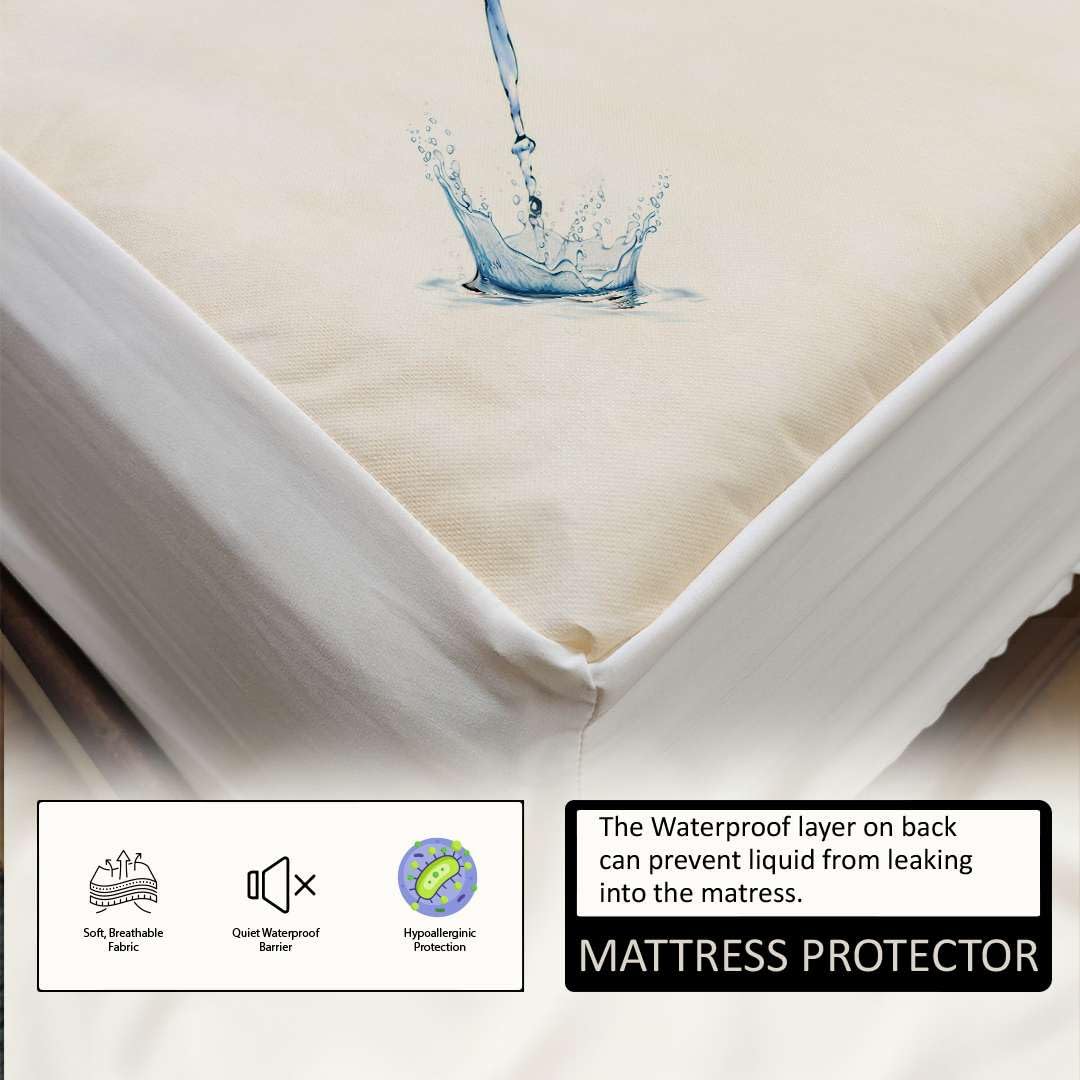 Premium 100% Waterproof Mattress Protector – Designed for ultimate protection, this mattress cover features a durable, elastic non-woven fabric that ensures a snug fit. It effectively shields against spills, stains, and allergens, making it ideal for a healthier sleep environment. Hypoallergenic and ultra-soft, this fitted bed protector enhances comfort while preserving the longevity of your mattress. Perfect for everyday use, it offers a breathable, noiseless, and secure sleeping experience.