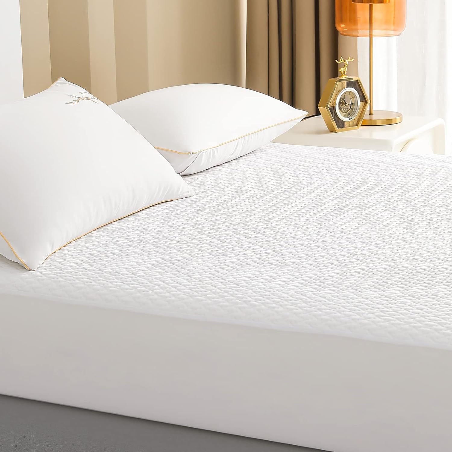 Reaks Queen Size Bed Waterproof Fitted Mattress Protector-Cooling Mattress Pad Cover with Deep Pocket Up to 18”-Hypoallergenic-Vinyl Free-Bed Bug Proof…