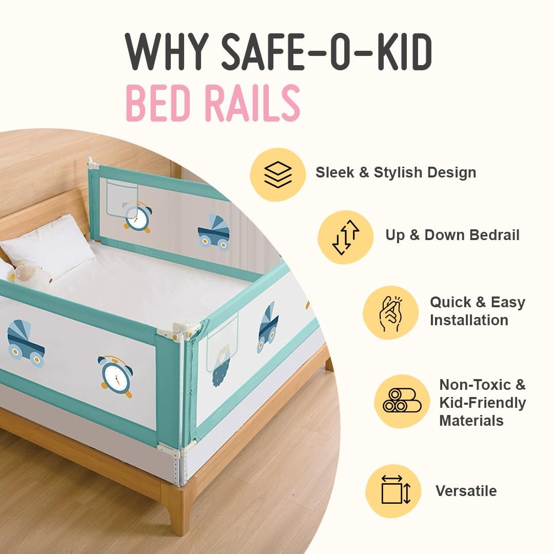 The Up and Down Style Bedrail by Safe-O-Kid is a crucial safety accessory designed to provide parents with peace of mind while ensuring baby safety during sleep. This versatile bed rail helps prevent your little one from rolling out of bed, creating a secure barrier that protects against nighttime falls. Its innovative up-and-down mechanism allows for easy access to the bed, enabling parents to raise or lower the rail as needed without compromising the safety of their child. To offer added protection, this bedrail comes with four sharp corner guards, safeguarding your child from accidental bumps and injuries caused by the edges of the bedrail. These corner guards are designed to prevent harm and give you extra reassurance while your child sleeps. The bedrail is made from high-quality, durable materials, ensuring long-lasting reliability and stability. It serves as a dependable baby bed protector side walls, providing effective protection while maintaining a sleek, practical design that fits most bed types and sizes. Ideal for parents transitioning their toddler to a big-kid bed, or simply looking to add an extra layer of security, this bed side protector for baby is perfect for any child?s room. The bed rails for baby are especially helpful in preventing falls, reducing the risk of trips to the hospital due to sleep-related injuries. The bedrail also features a one-year warranty, offering parents additional confidence in its durability and safety. With the Safe-O-Kid Up and Down Style Bedrail, parents can ensure a safe and sound sleep environment, while children rest securely in their beds. This bed safety guard for kids combines functionality, durability, and extra protection, making it the ideal choice for any parent looking to enhance their child’s sleep safety.