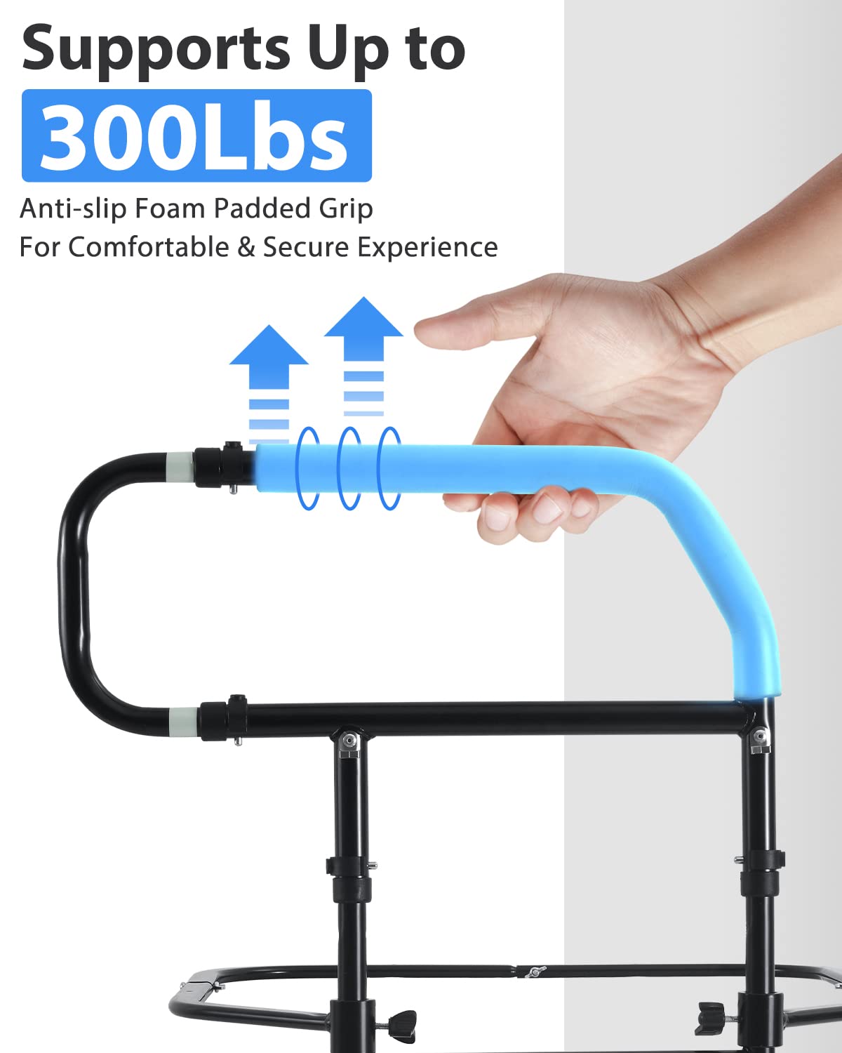 Sturdy stainless steel frame, with a max weight capacity of 300 lbs, comfortable armrest and non-slip rubber feet provide balance and stability. People can get up security in the absence of help who is elderly, the disabled, pregnant women or anyone physical limitations or injured