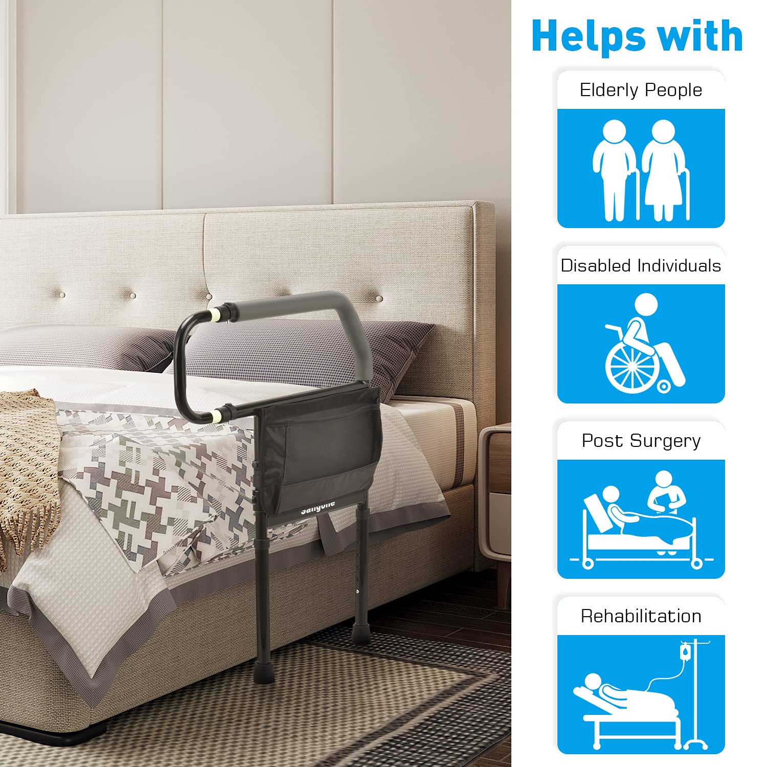 The bed support rail has height-adjustable legs and grip bar, so that the product can be installed on any size bed (double bed, full bed, twin bed, king bed) and on both sides of the bed right or left side. Easily assemble the bed safety rail without tools or hassle.
