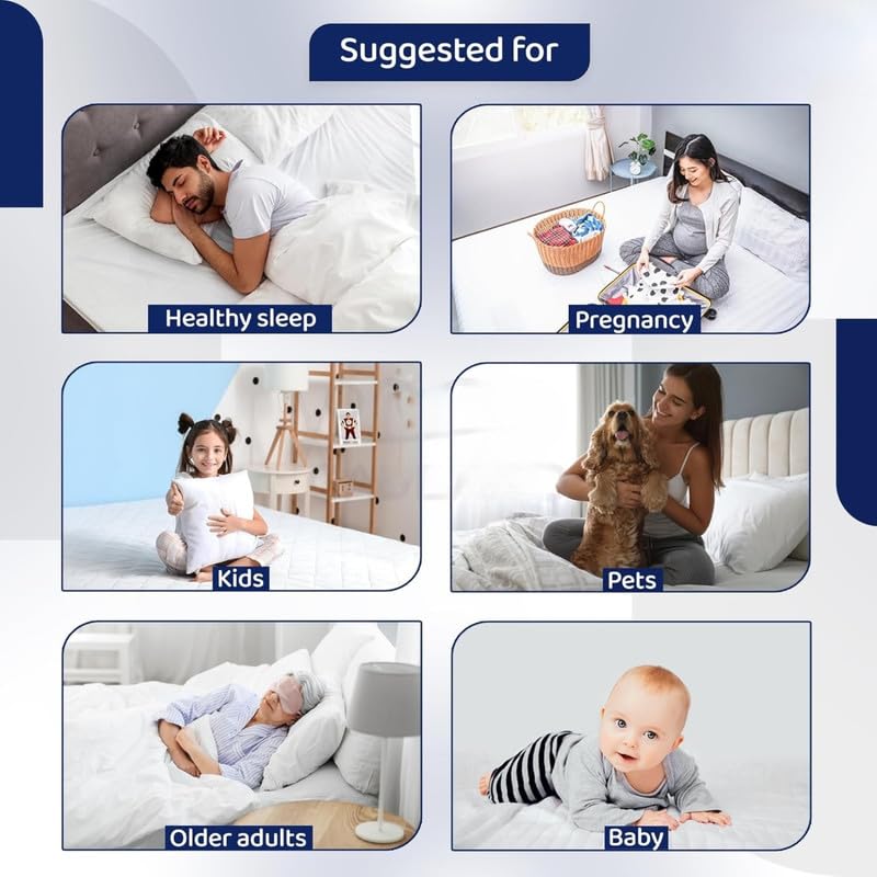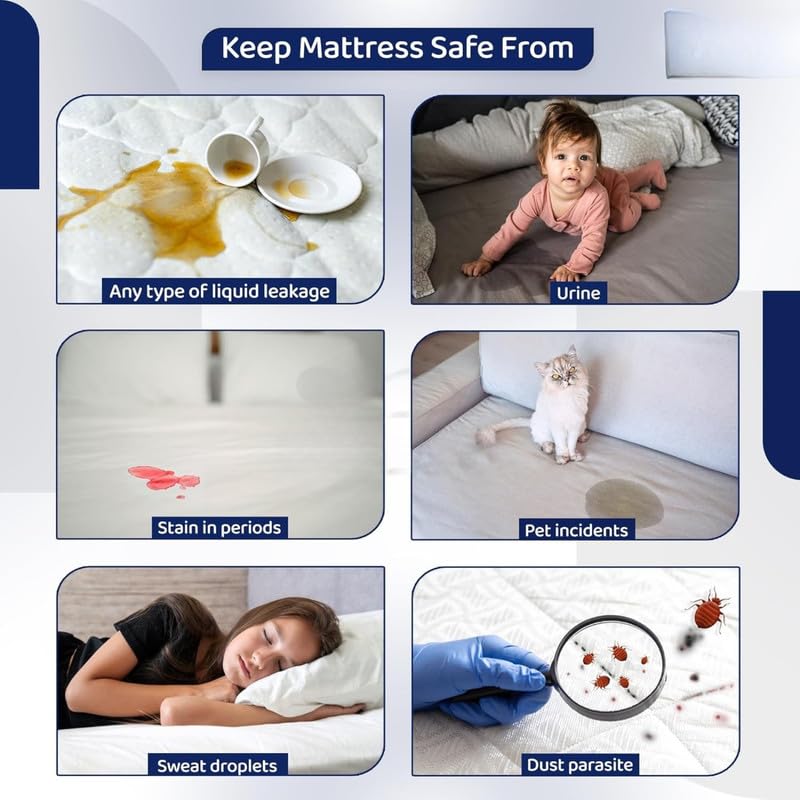100% Waterproof Protection: Shields your mattress from accidental spills, urine, sweat, and stains—ideal for homes with kids, pets, or elderly family members.